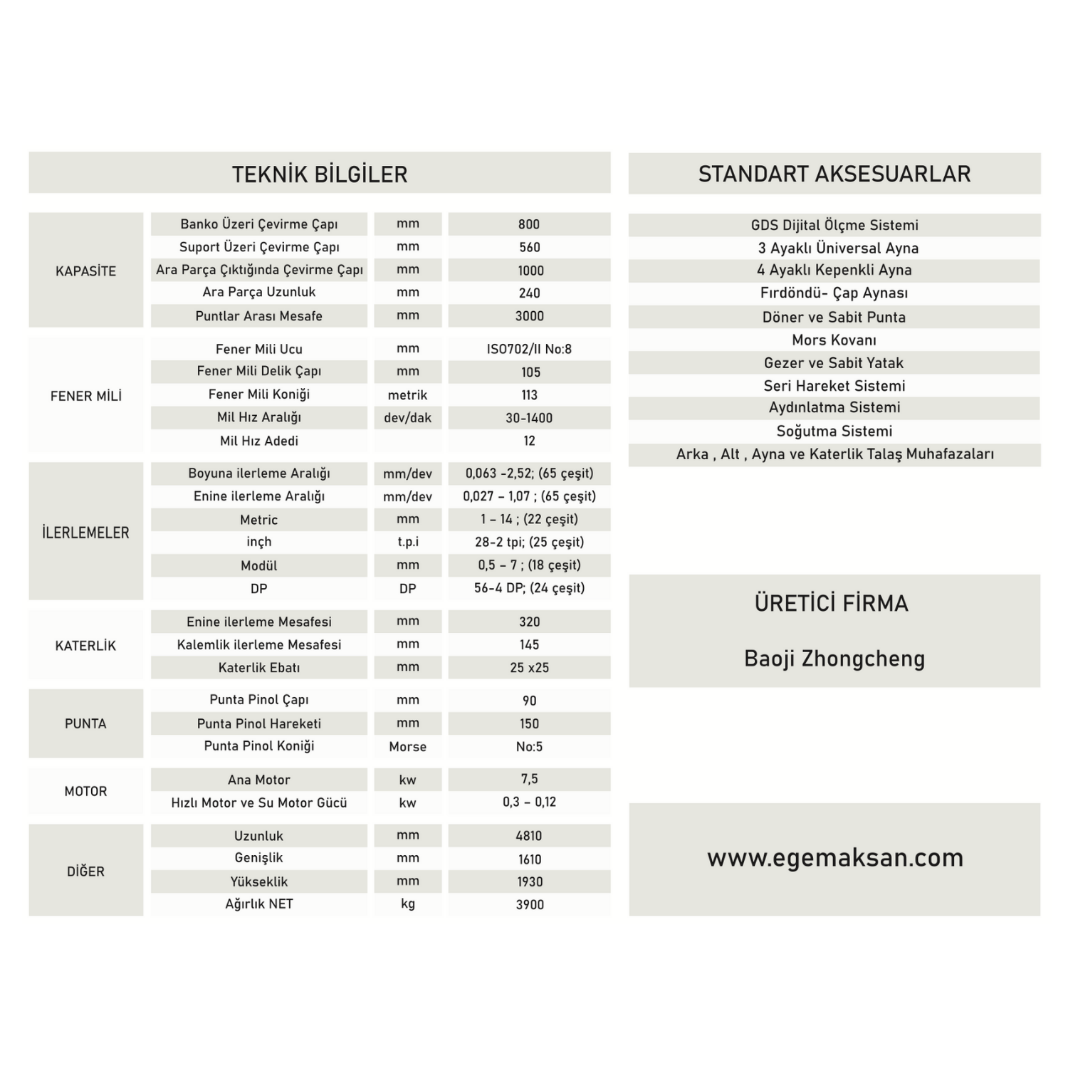 Baoji torna tezgahları, dayanıklı yapısı, hassas işleme kabiliyeti ve farklı model seçenekleri ile metal işleme sektöründe güvenilir bir çözüm sunar. Küçük atölyelerden büyük üretim tesislerine kadar her ölçekten işletme, Baoji tezgahları sayesinde üretim süreçlerini hızlandırabilir ve yüksek kaliteli parçalar üretebilir. Dayanıklılık, hassasiyet ve verimlilik arayan tüm kullanıcılar için Baoji torna tezgahları ideal bir tercihtir.