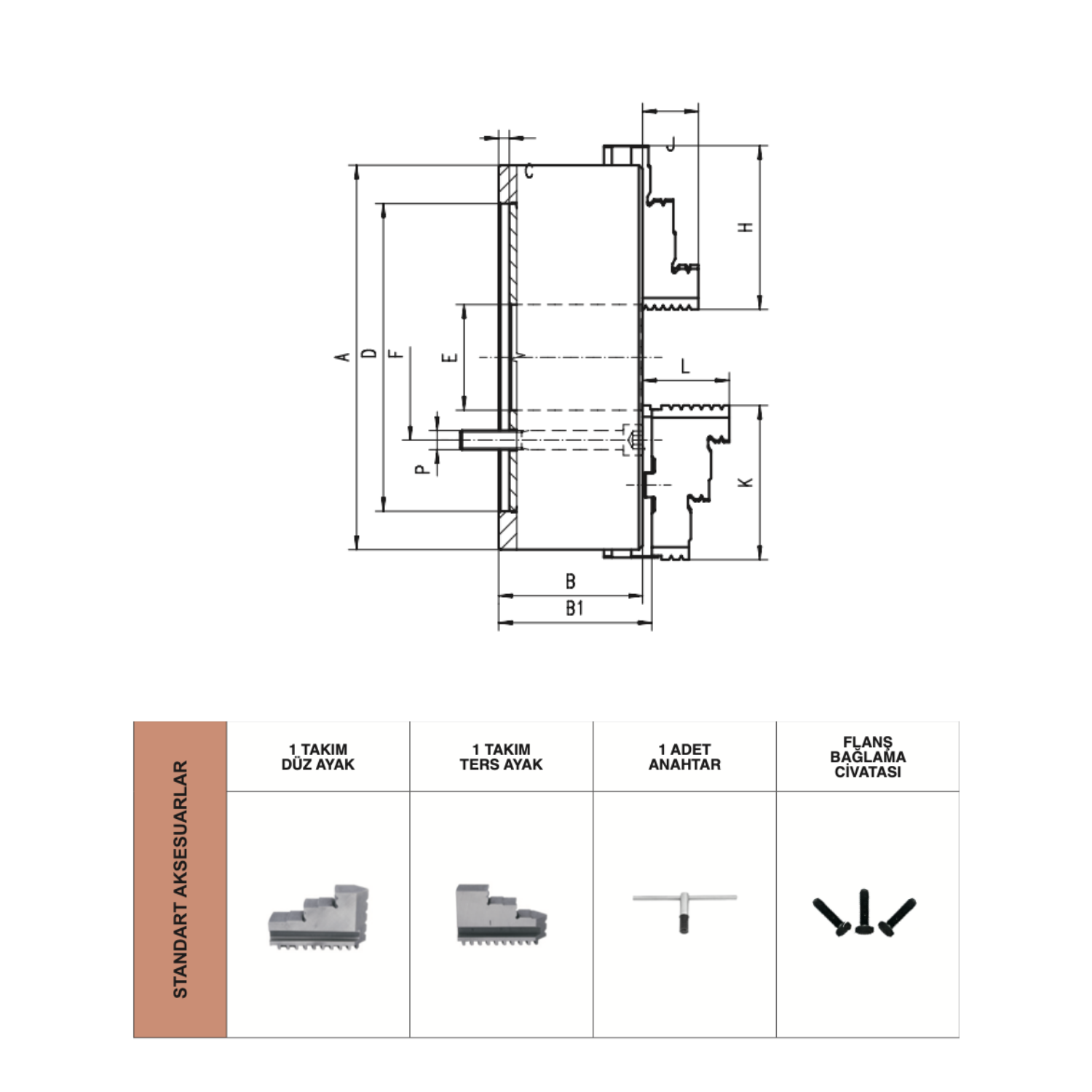 • Güçlü Bağlantı Sistemi: Fener miline flanş ile bağlanabilir, farklı torna tiplerine kolayca uyum sağlar.