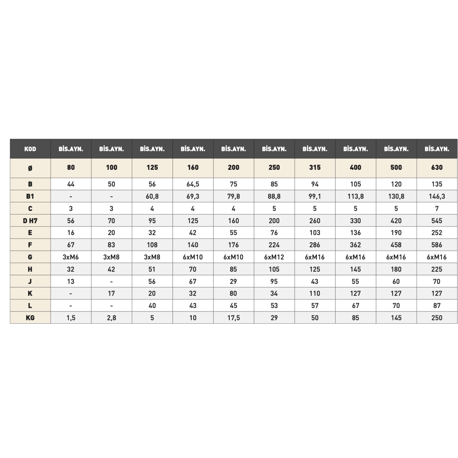 • Bağlantı Dişleri: 3xM6, 3xM8, 6xM10, 6xM12, 6xM16 seçenekleri mevcuttur.