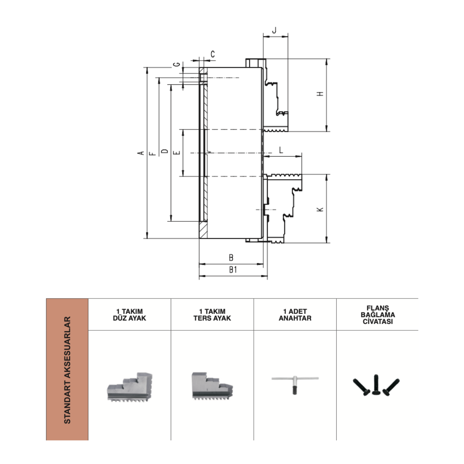 Bison 4 Ayaklı Torna Aynası, endüstriyel üretim, metal işleme, kalıp imalatı ve CNC torna uygulamaları gibi yüksek doğruluk isteyen operasyonlar için mükemmel bir çözümdür. Özellikle büyük, düzensiz veya ağır parçaların güvenli şekilde sabitlenmesi gereken işlemlerde üstün performans sunar.