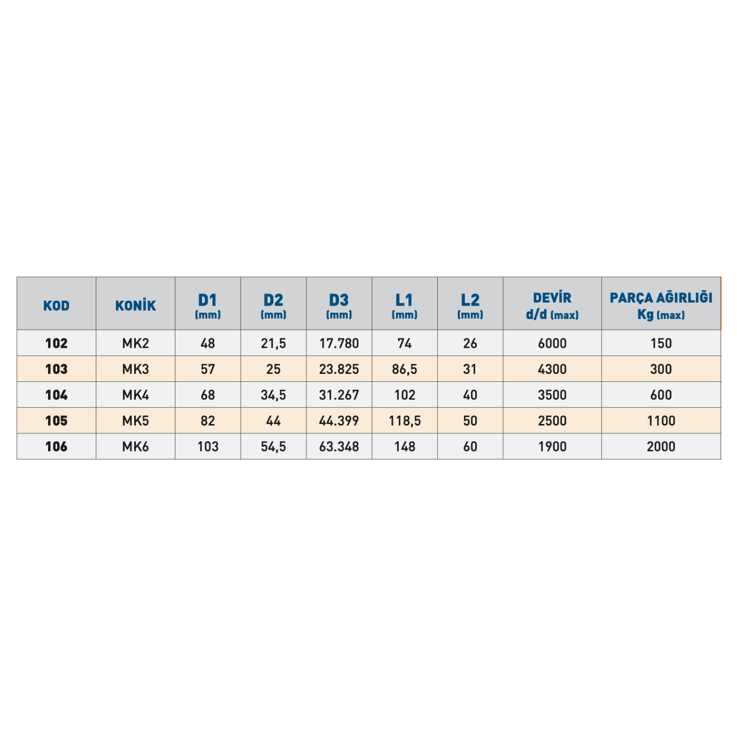 Döner puntalar, torna tezgâhlarında iş parçalarının merkezde güvenli ve hassas şekilde desteklenmesini sağlar. TEMAK Tip 100 döner punta, yüksek devirlerde dahi düşük sürtünme, uzun rulman ömrü ve maksimum hassasiyet sunar.