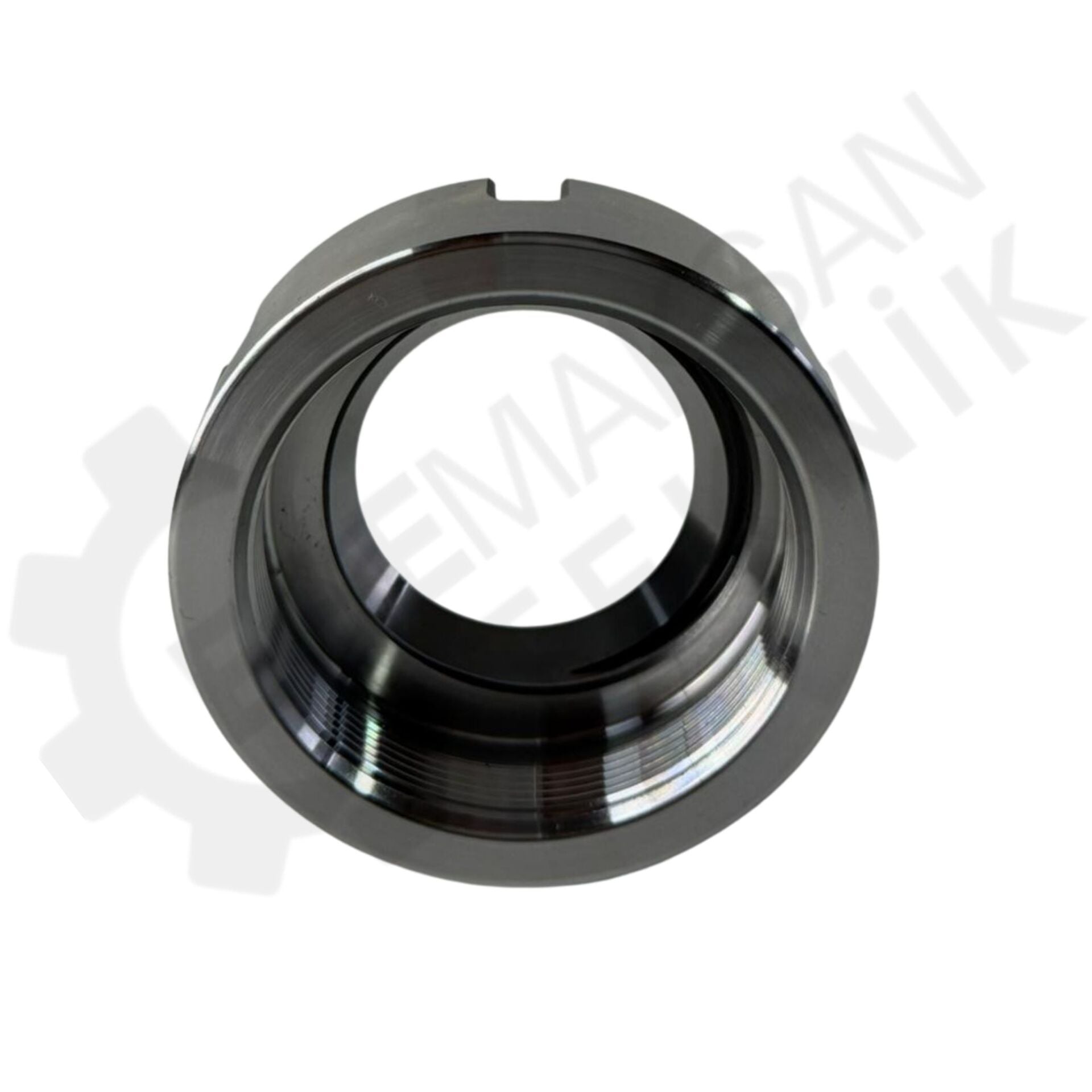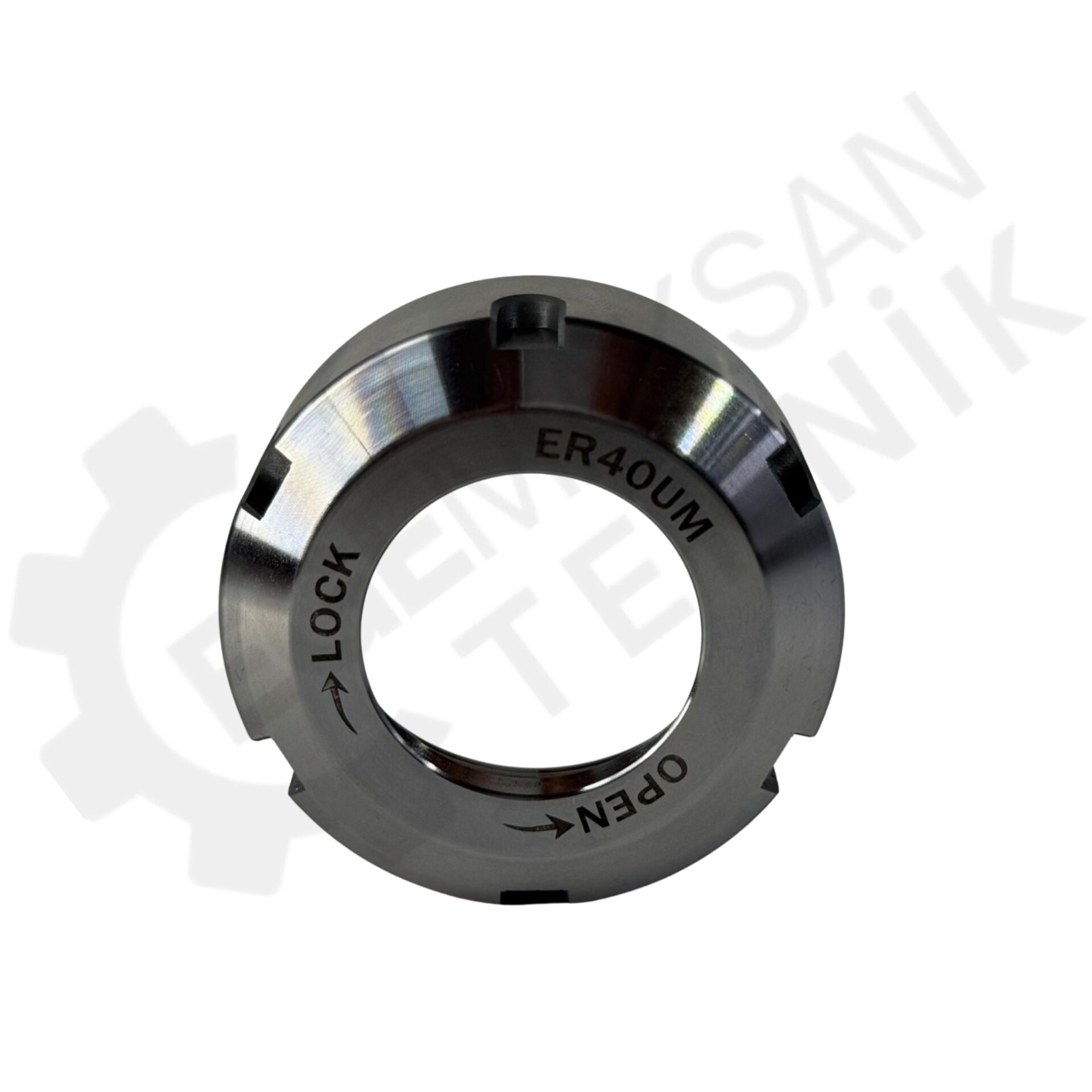 ER40 sıkma somunu, torna tezgahlarında kullanılan ER40 pens sistemlerinin güvenli ve hassas şekilde sıkılmasını sağlayan önemli bir yedek parça ve aksesuardır. Pensin takım veya iş parçasını yüksek merkezleme hassasiyetiyle kavramasına yardımcı olarak titreşimsiz ve stabil çalışma sunar.