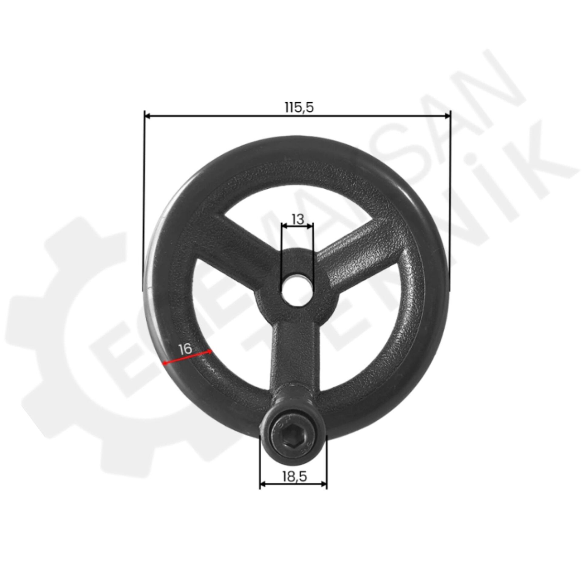 Freze Plastik İlerleme Tekeri, torna ve freze tezgâhlarında manuel ilerleme ve hassas ayar işlemlerinin kontrollü şekilde yapılmasını sağlayan önemli bir kumanda parçasıdır. Ergonomik tasarımı sayesinde operatörün makine hareketlerini rahat, dengeli ve hassas biçimde yönetmesine yardımcı olur.