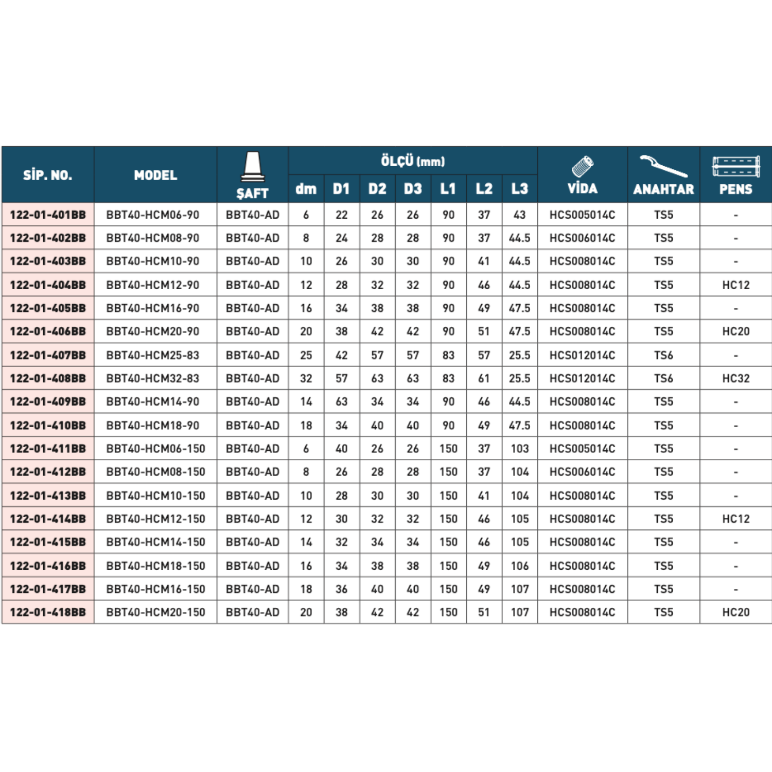 • Şaft Tipi: BBT40-AD, BBT50-AD