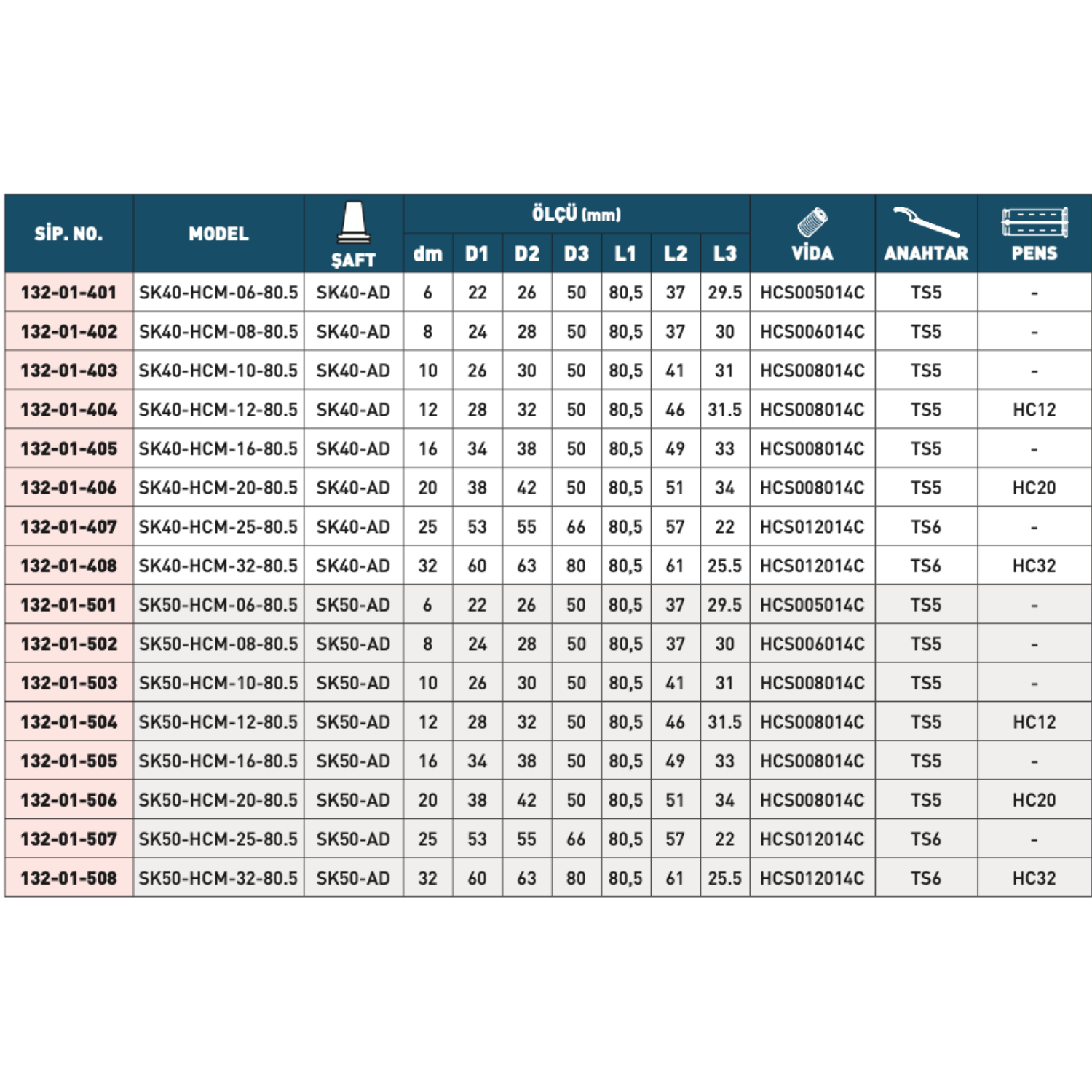 • Şaft Tipi: SK40-AD, SK50-AD