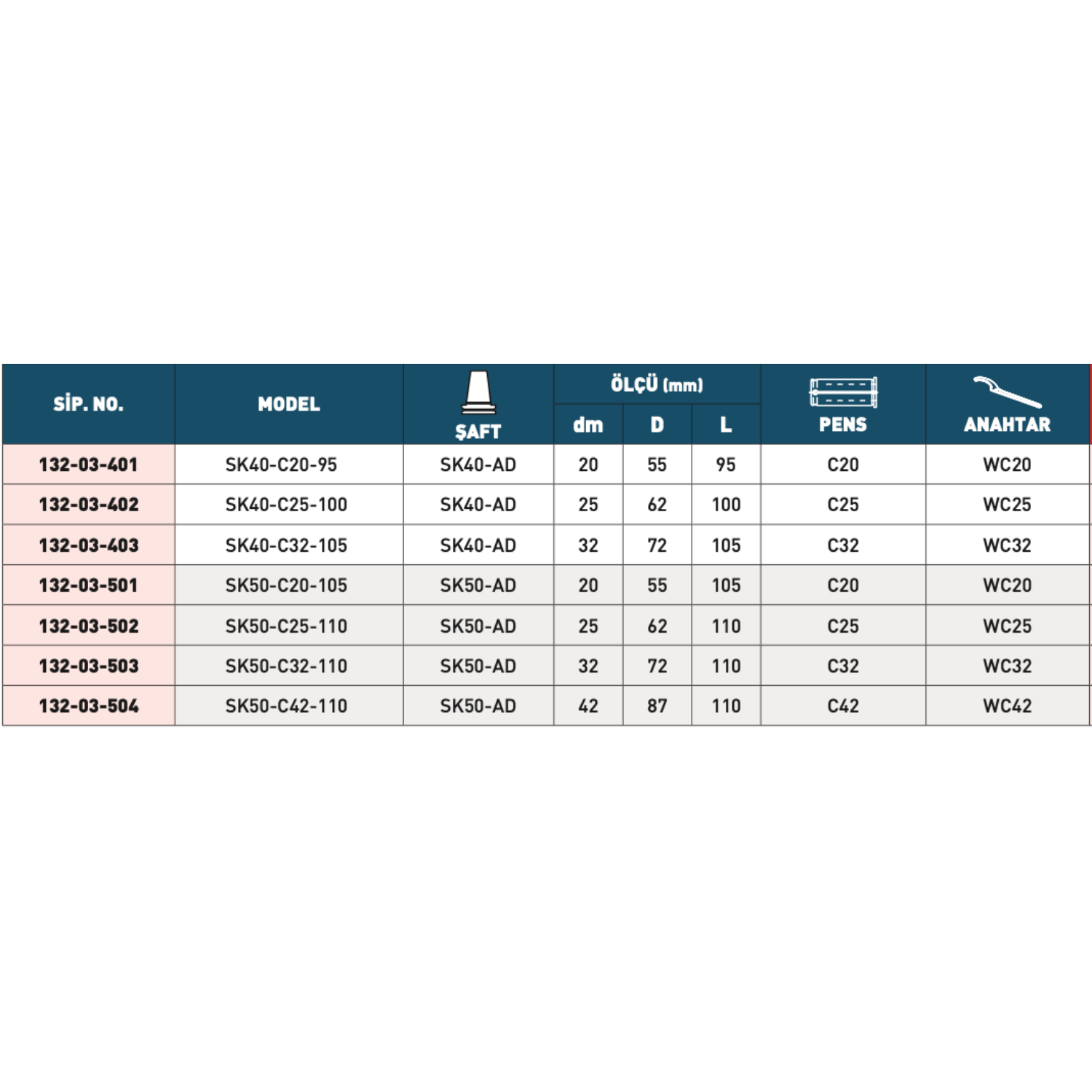 • Modeller: SK40–C20, SK40–C25, SK40–C32, SK50–C25, SK50–C32, SK50–C42