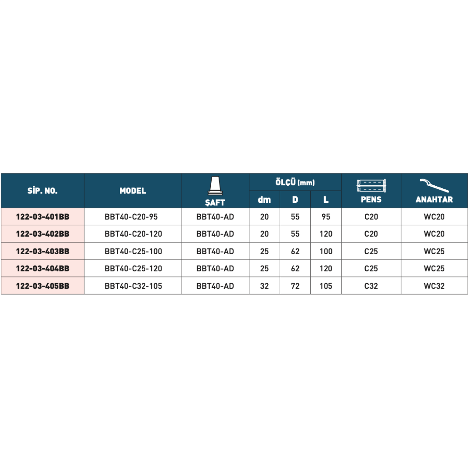 • Şaft: BBT40-AD