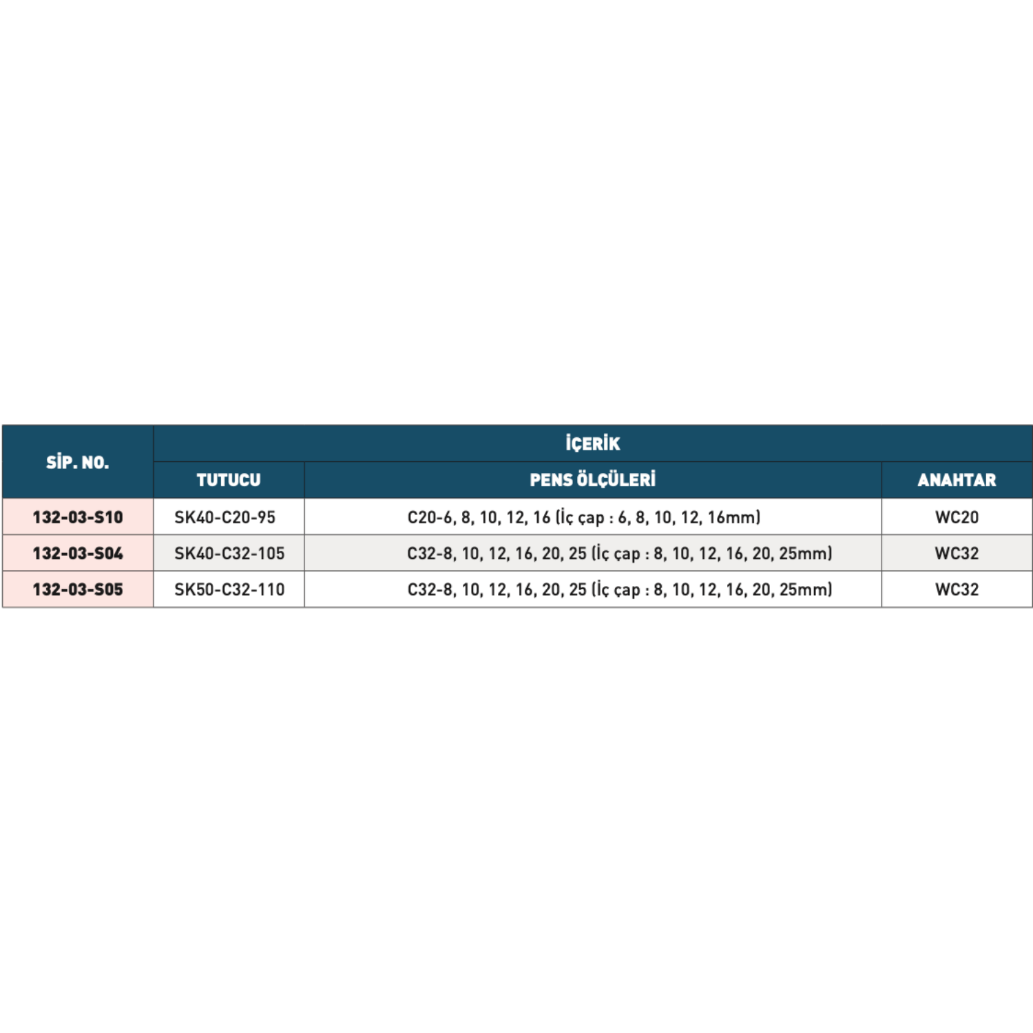 • C32 (8, 10, 12, 16, 20, 25 mm)