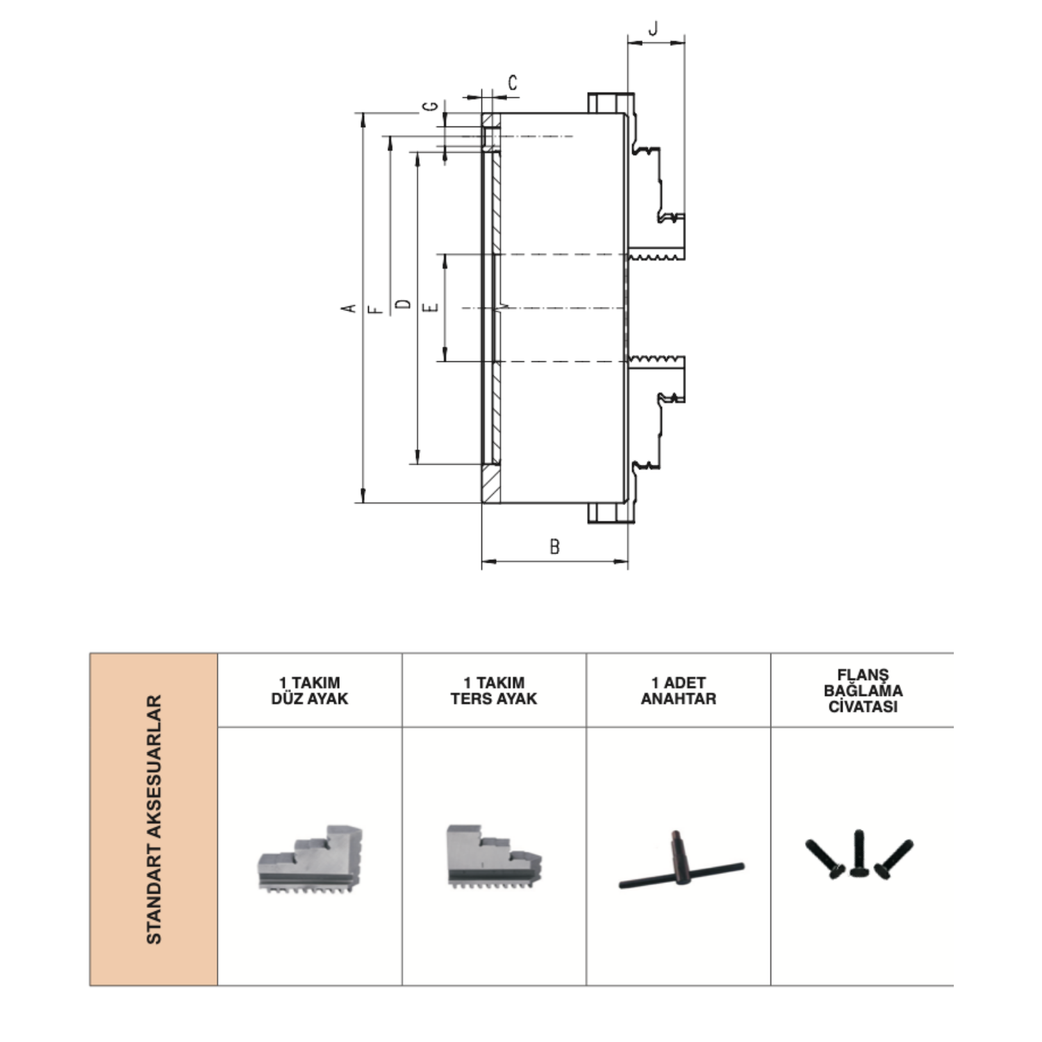 • Evrensel Uyum: Universal torna tezgâhlarında fener miline flanş ile kolayca bağlanır.