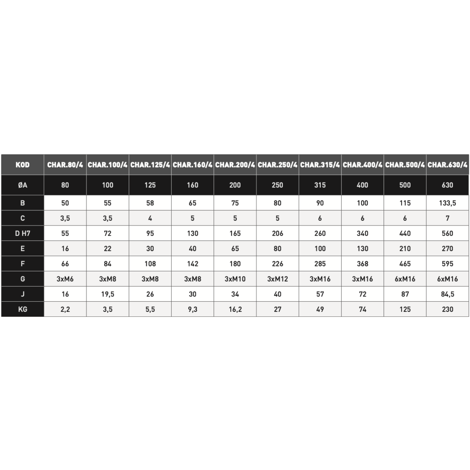 • Çap seçenekleri: 80 mm’den 630 mm’ye kadar