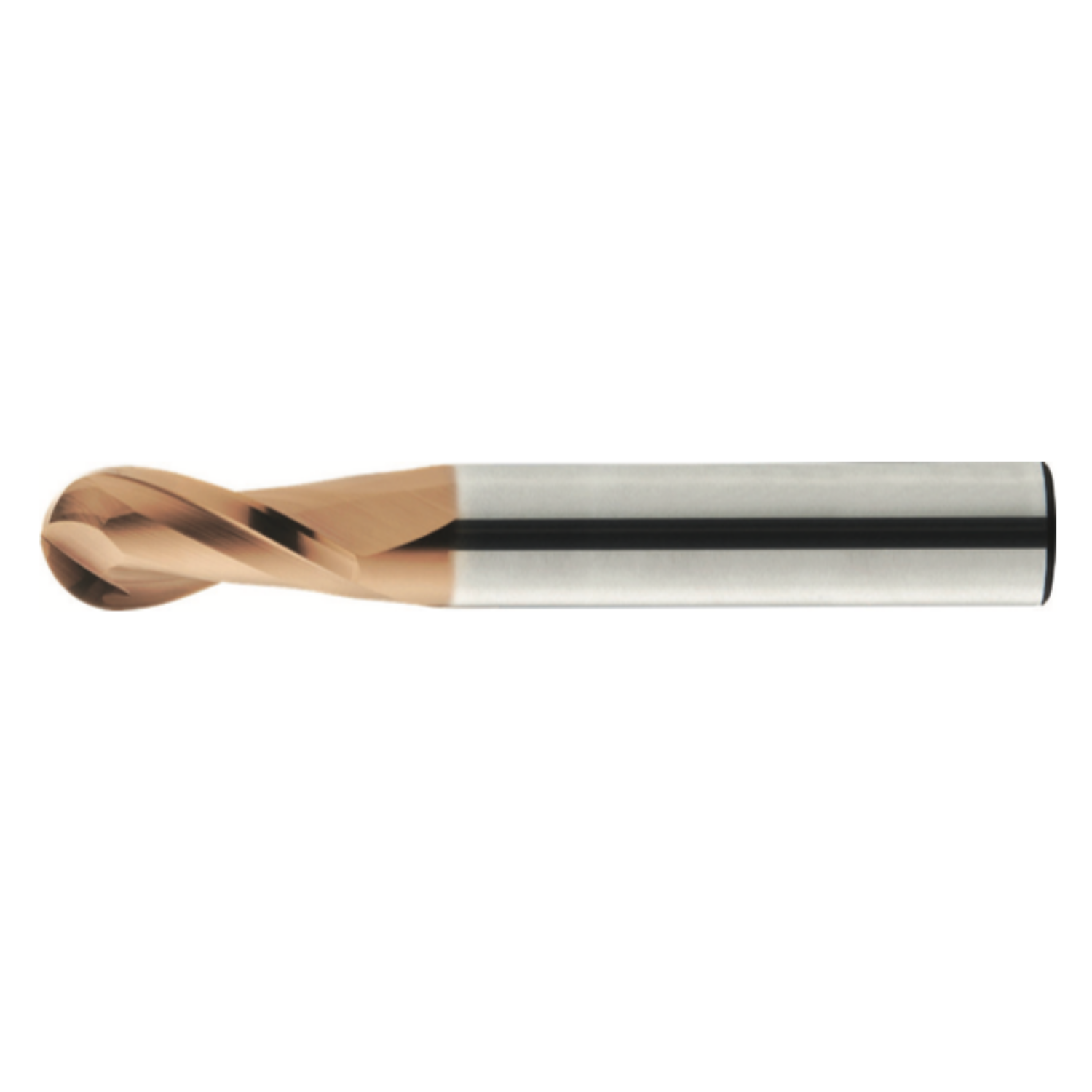 Kraft 2 Ağız Küresel Kısa Karbür Parmak Freze | TiSiN Kaplama | 55 HRC | Z2