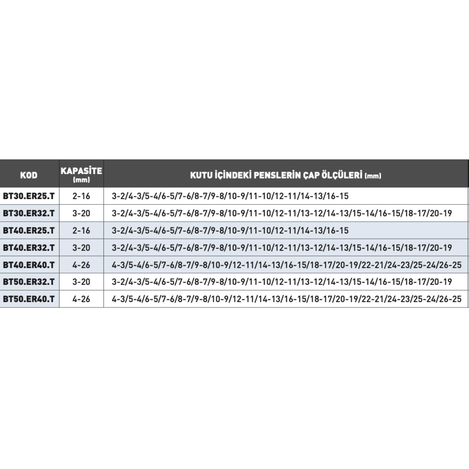 BT30, BT40 ve BT50 konik seçenekleriyle her ölçekteki işleme uygulamasına uyum sağlayan bu setler, DIN 6499-B ve ISO 15488 standartlarına göre üretilmiştir.