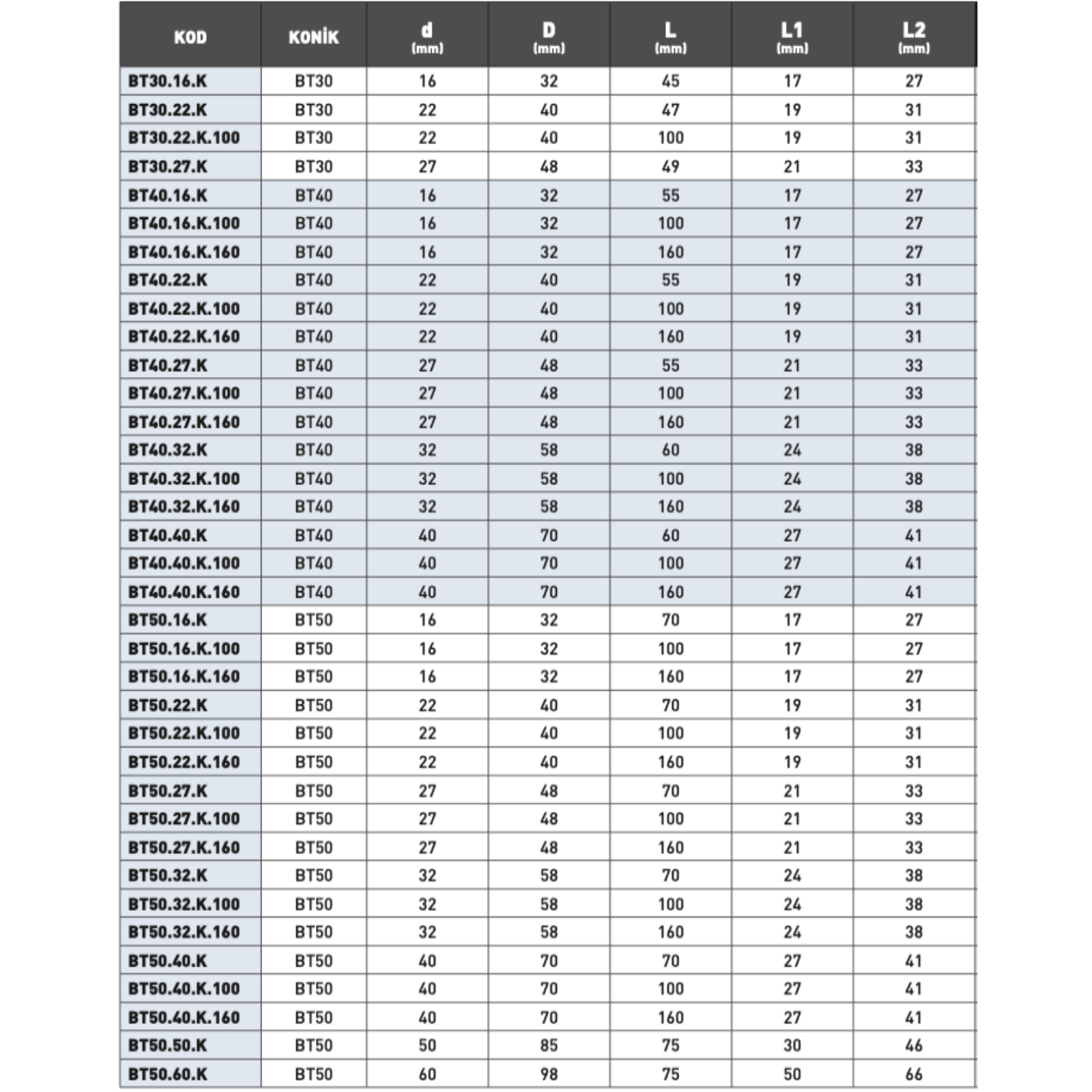 • Uzunluk (L): 35 – 97 mm