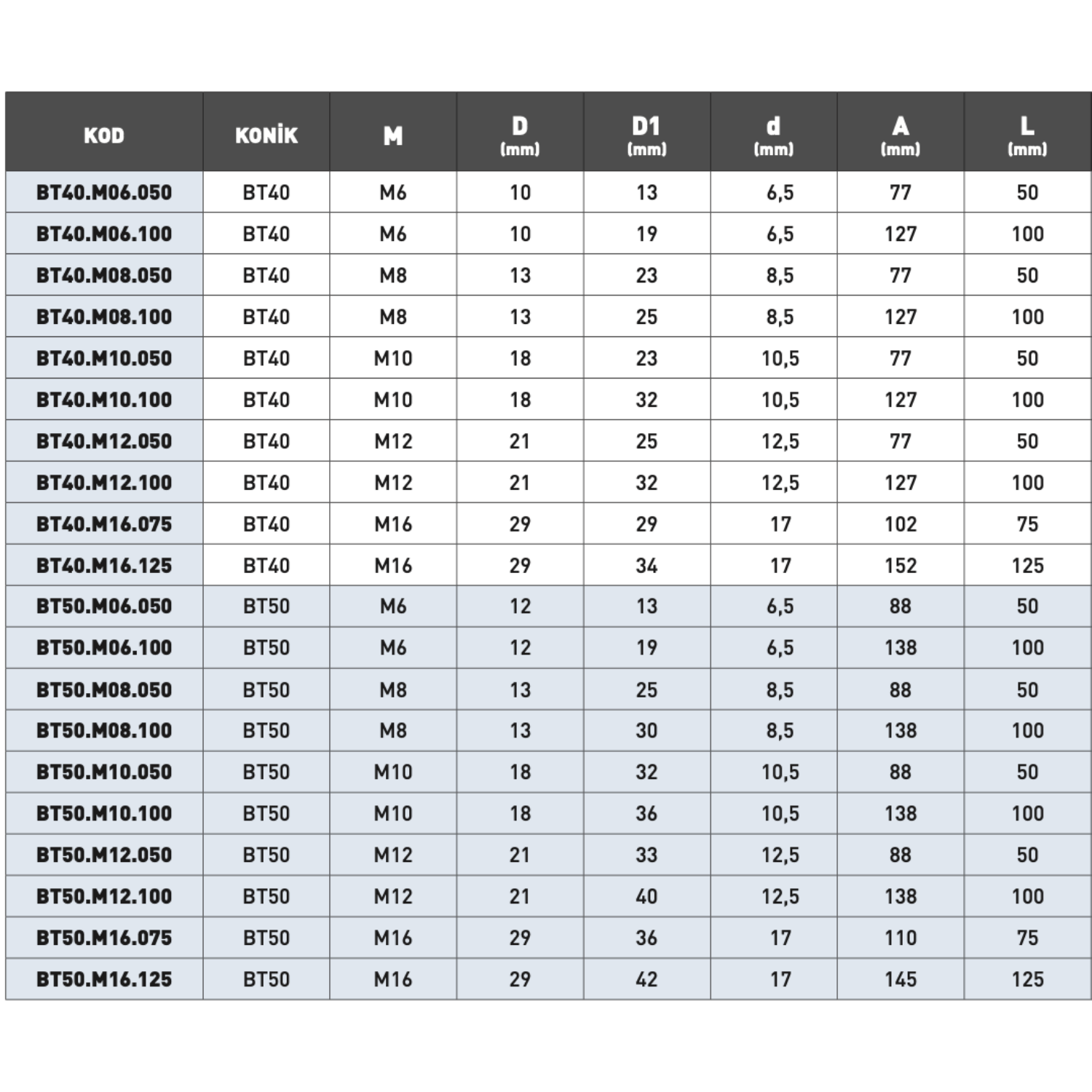 Kraft BT Vidalı Takım Tutucular – Maksimum Sıkma Gücü ve Hassasiyet