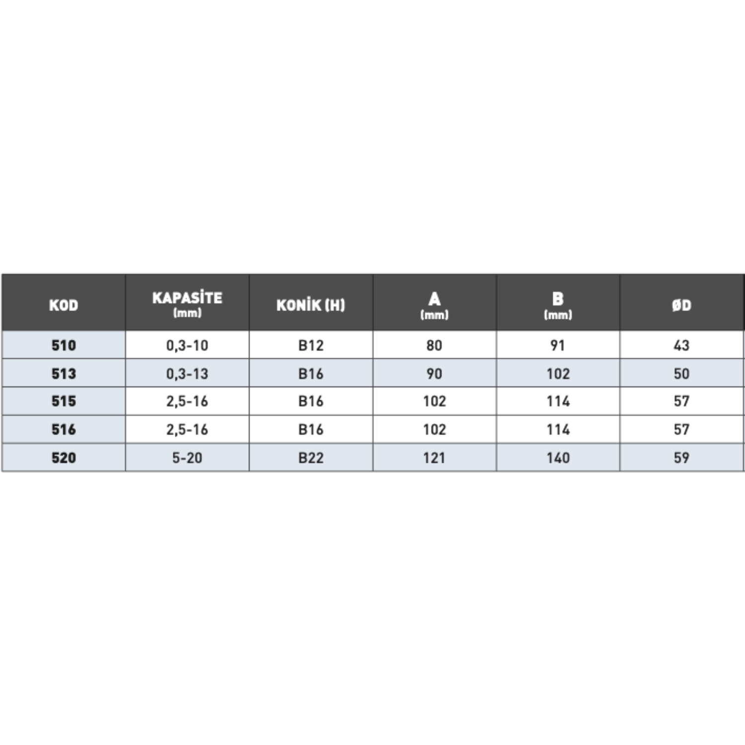 • Dış Çap (ØD): 43 – 59 mm