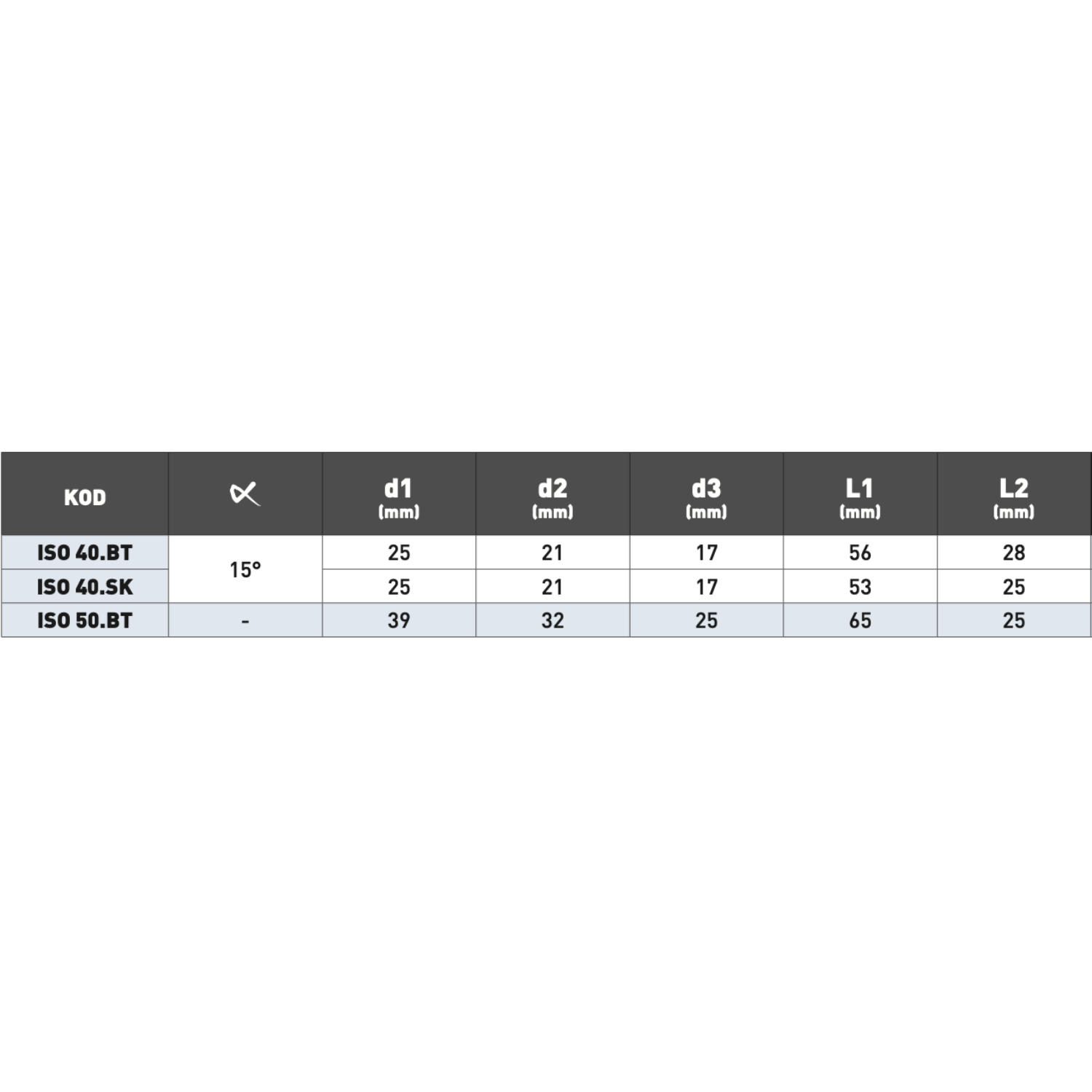 • Kodlar: ISO 40.BT / ISO 40.SK / ISO 50.BT