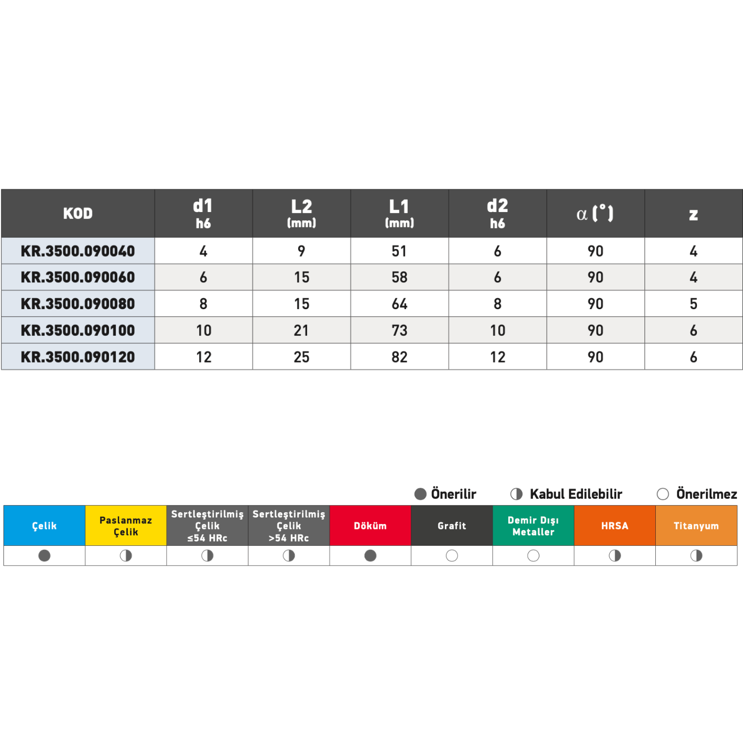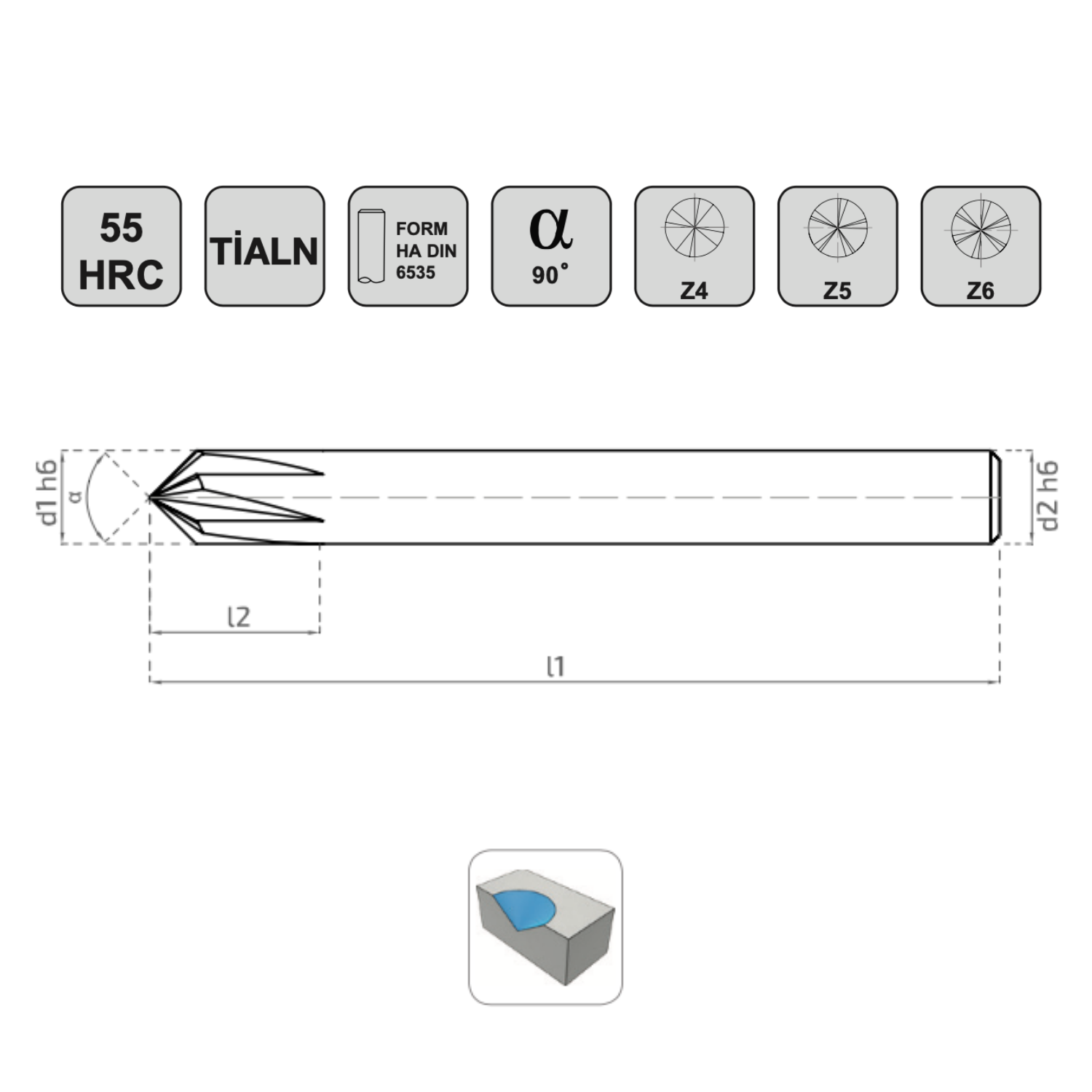 • Uç Formu: DIN 6535 HA standardına uygun pah kırma geometrisi