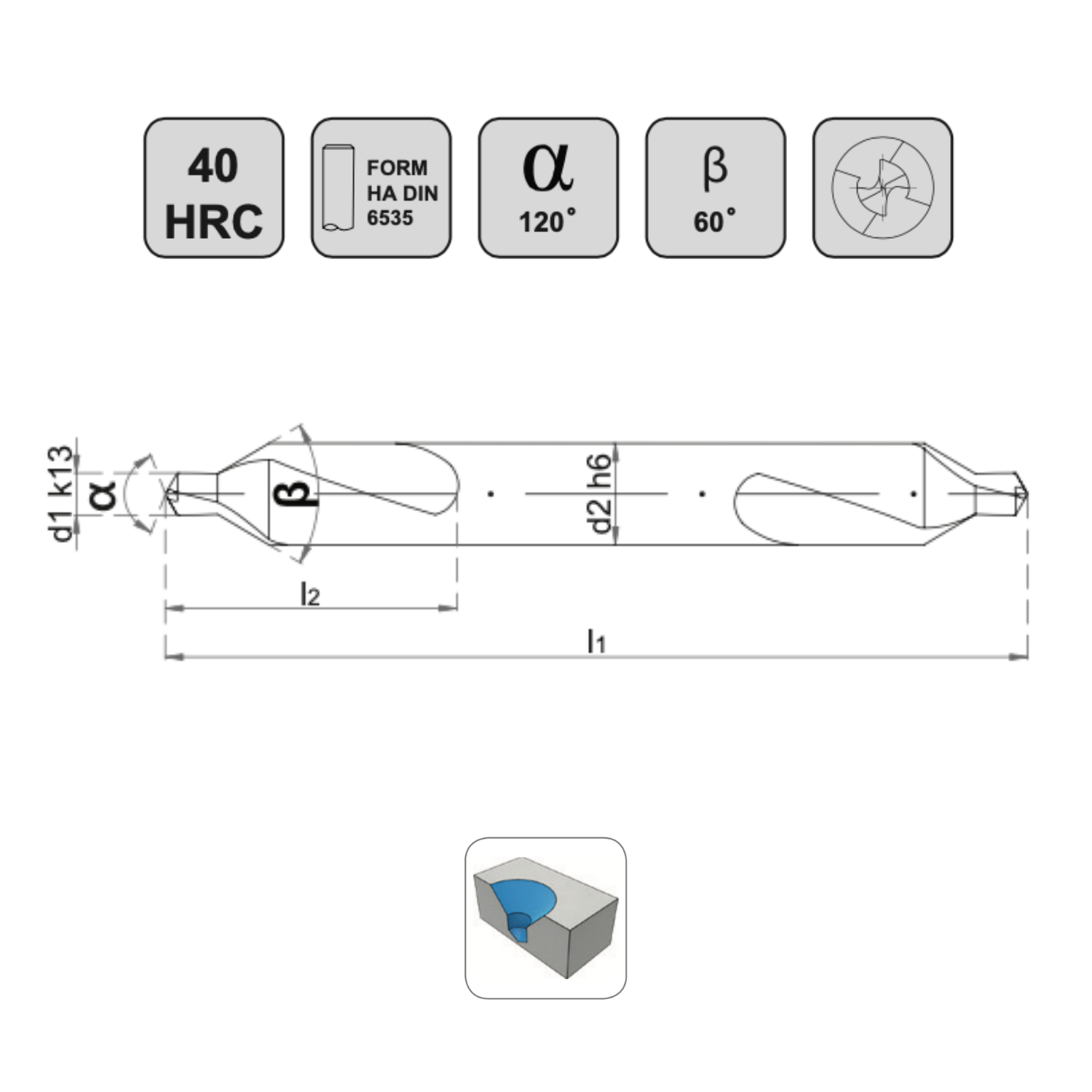 DIN 6535 standardına uygun olarak üretilen bu matkaplar, 60° ve 120° punta açılarıyla farklı işleme ihtiyaçlarına uyum sağlar. Keskin uç geometrisi sayesinde merkezleme işlemlerinde kayma riskini ortadan kaldırır, maksimum doğruluk ve stabil kesim performansı sağlar.