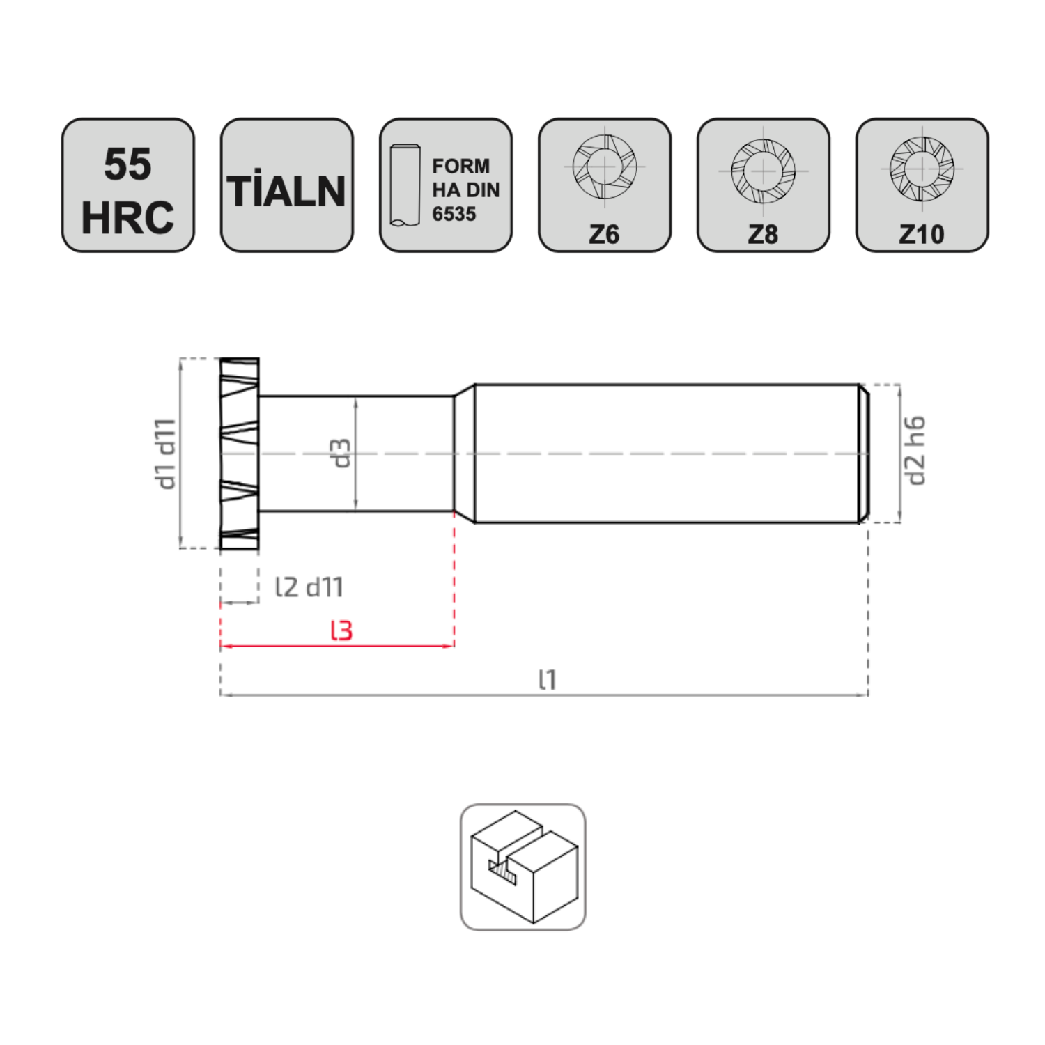• Uç Formu: DIN 6535 standardına uygun T-slot geometrisi