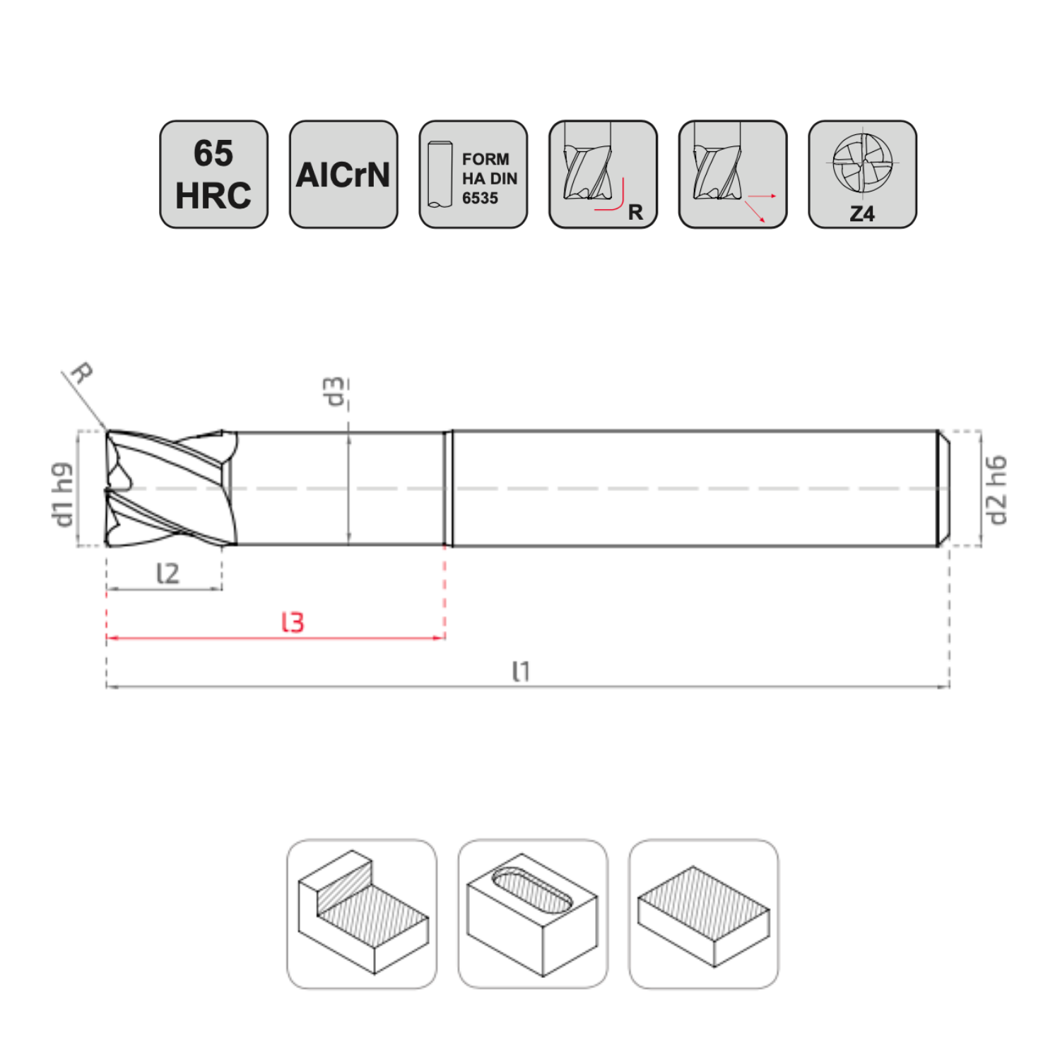 • 65 HRC’ye kadar sert malzemelerde üstün performans