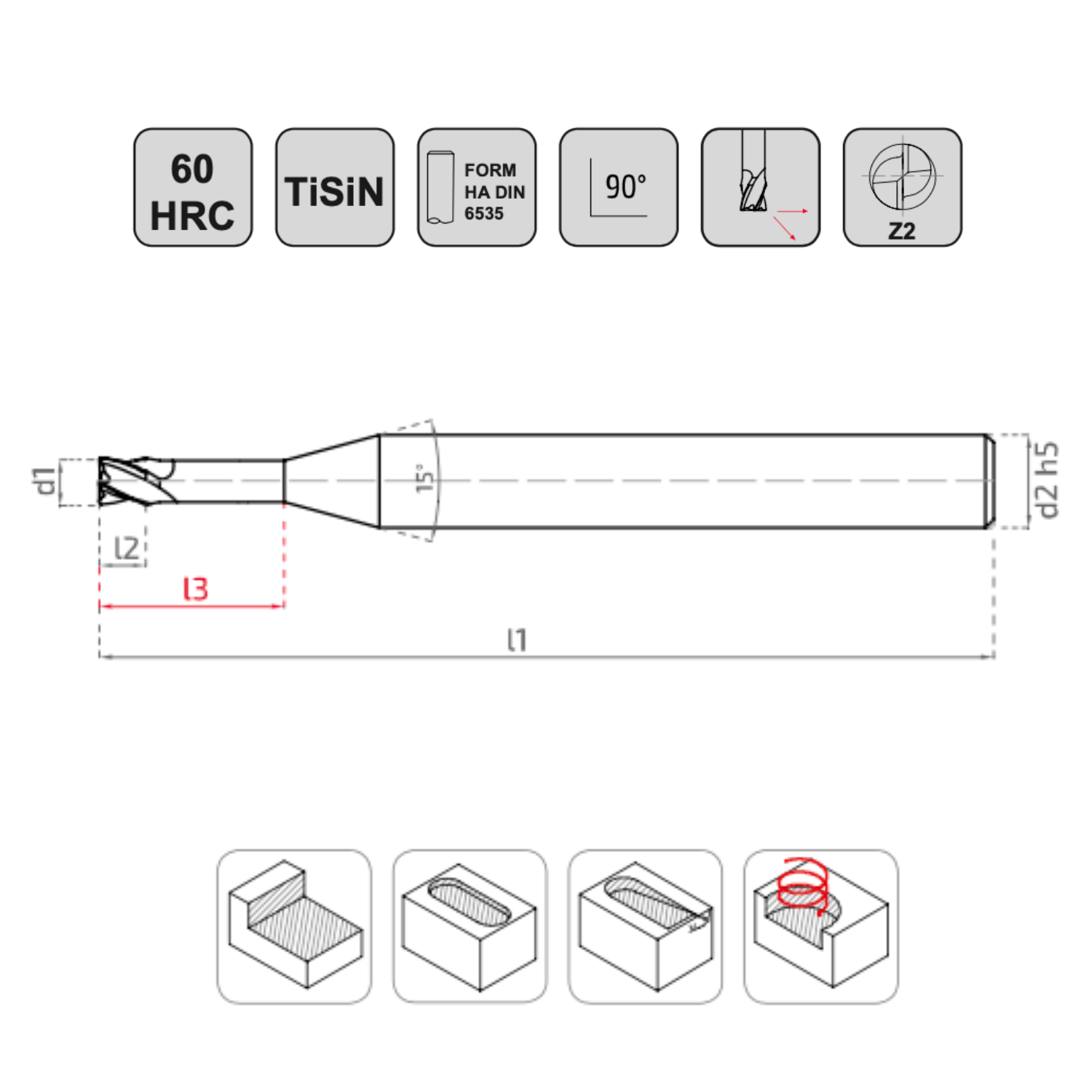 • 2 bıçaklı tasarım ile dengeli talaş kaldırma ve yüksek yüzey kalitesi