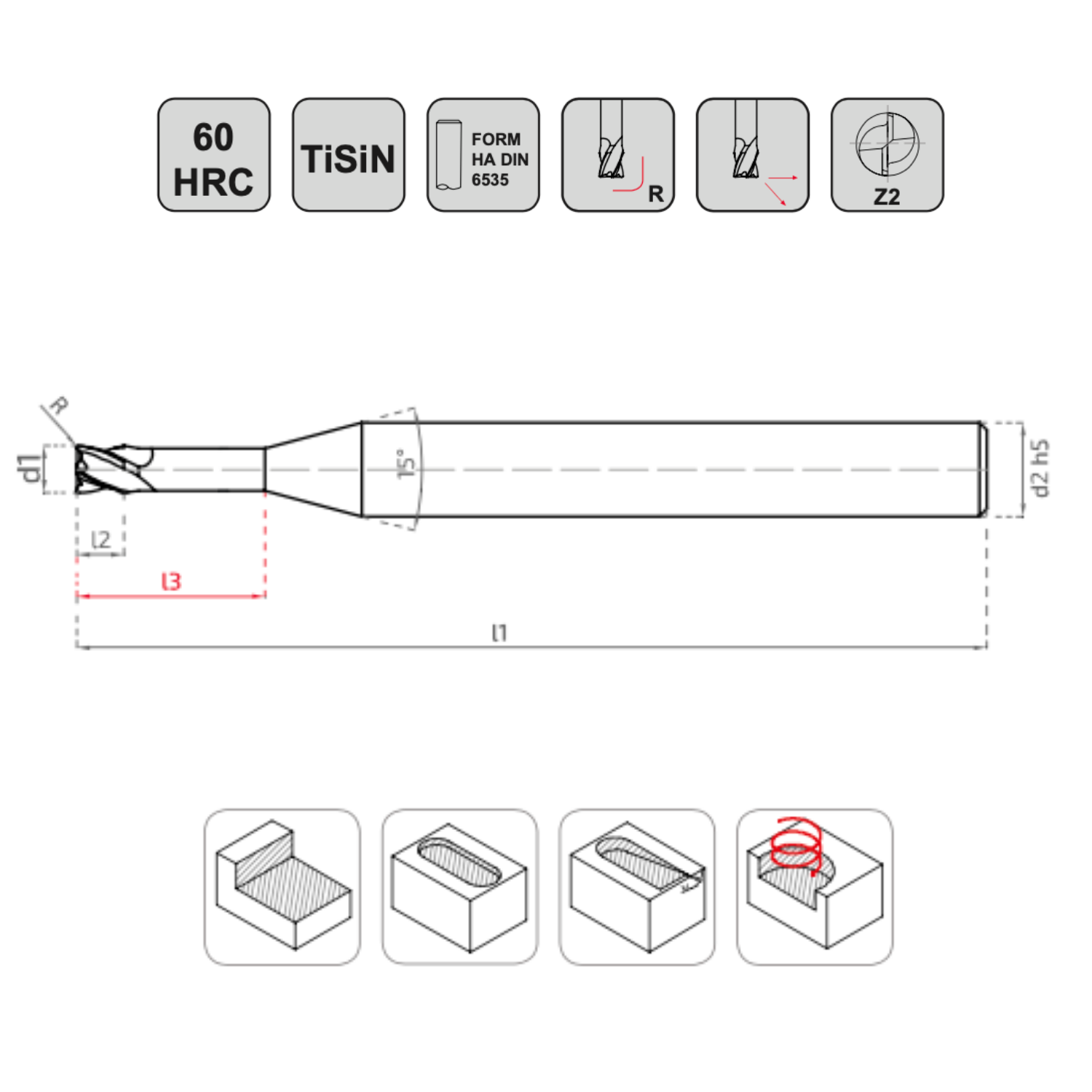 • 60 HRC’ye kadar sert malzemelerde yüksek performans
