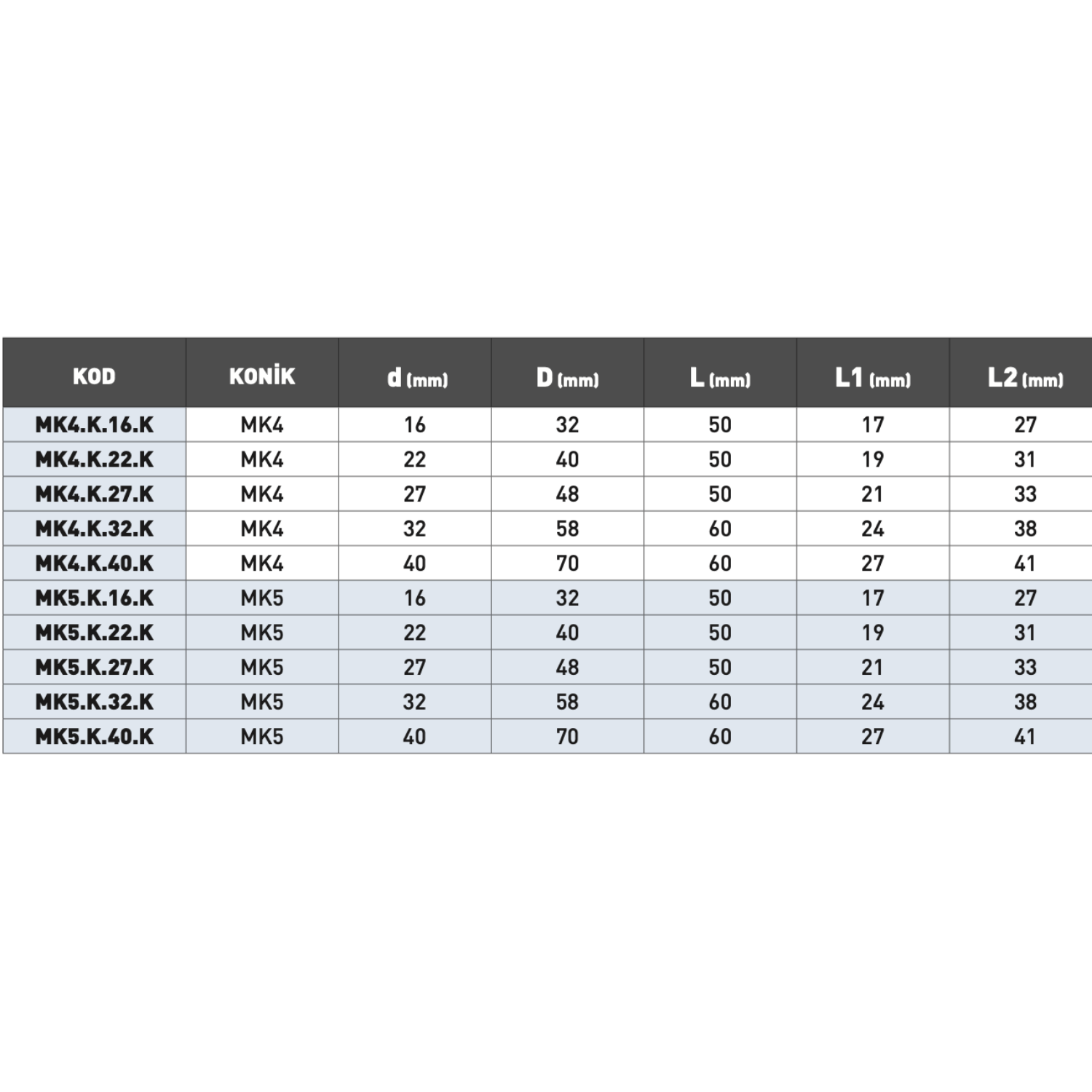 • Tam uyumluluk: MK4 ve MK5 konikli CNC tezgahlarla mükemmel şekilde çalışır.