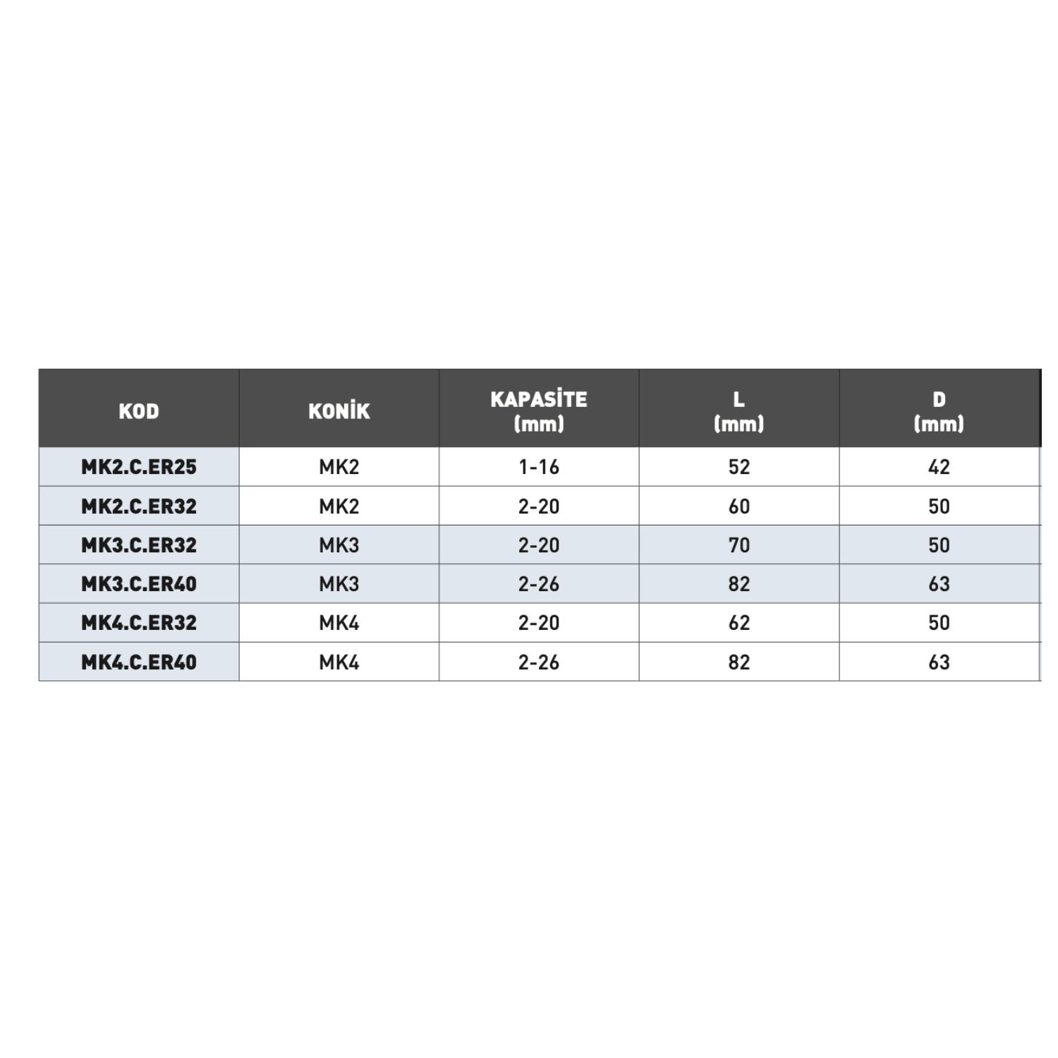 • Kod: MK2.ER25 / MK2.ER32 / MK3.ER32 / MK3.ER40 / MK4.ER40