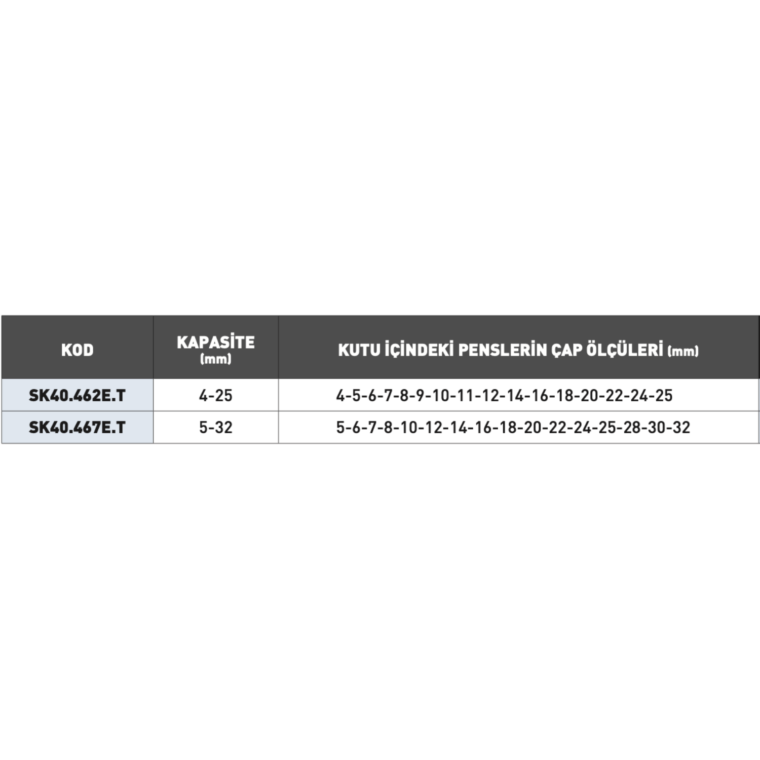 • Geniş kullanım aralığı: 4 mm’den 32 mm’ye kadar farklı takım çaplarıyla uyumludur.