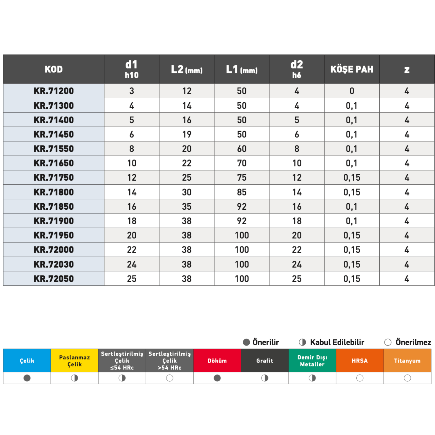 KRAFT Standart Kısa Ecoplus Karbür Parmak Freze