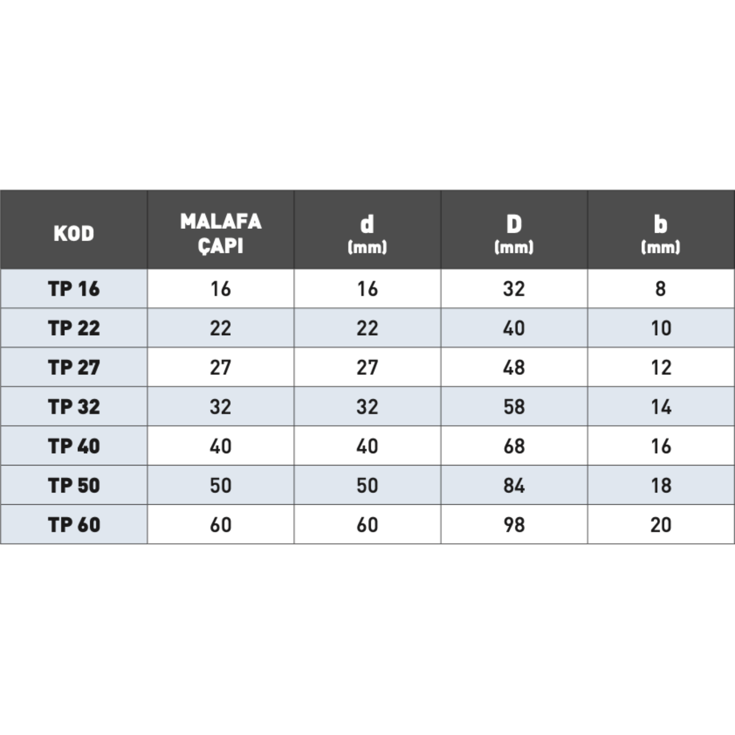 TP16 – TP60 arası farklı çaplarda üretilen bu pullar, çeşitli CNC ve delme sistemlerine kolayca uyum sağlar.