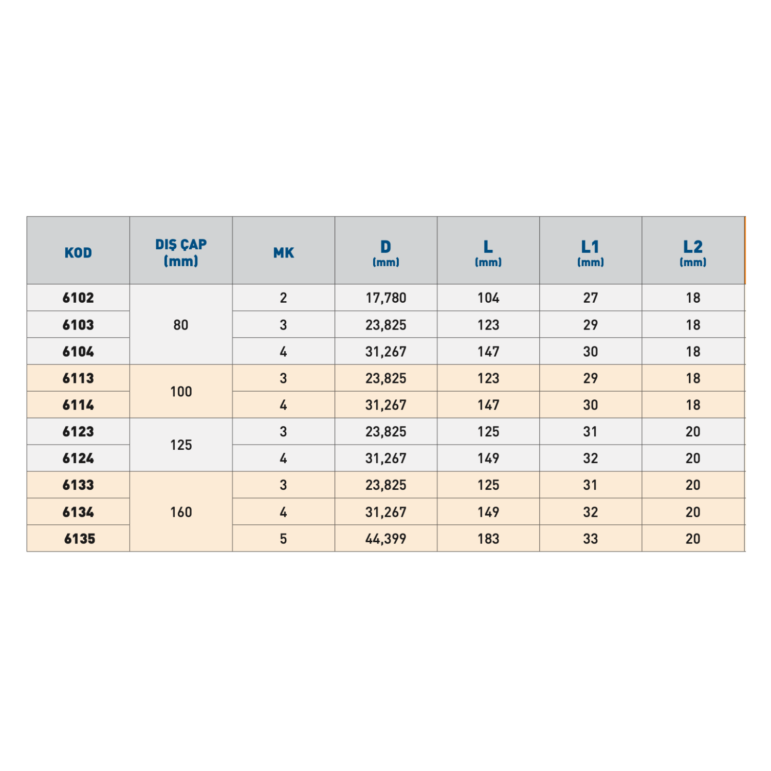 • Dış Çap Aralıkları: 80 mm – 160 mm