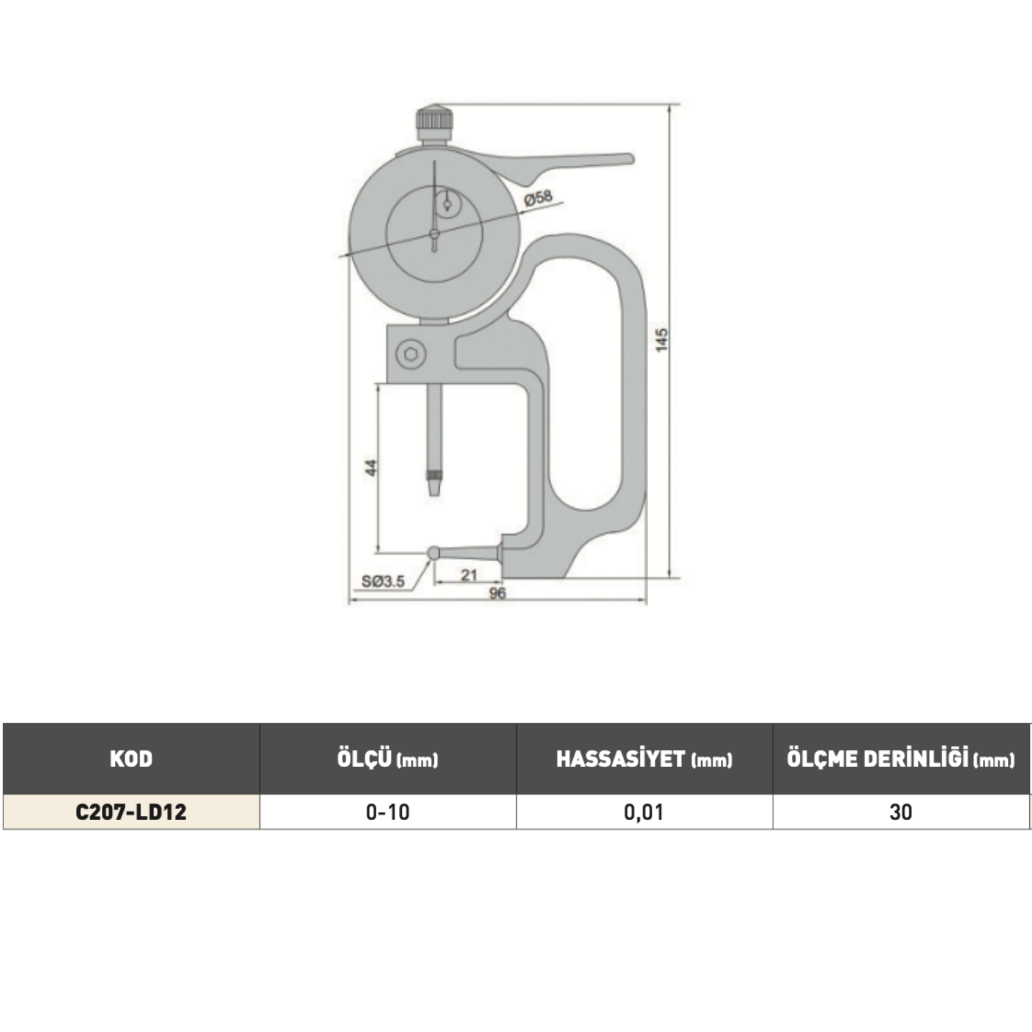 • 0–10 mm ölçüm aralığı