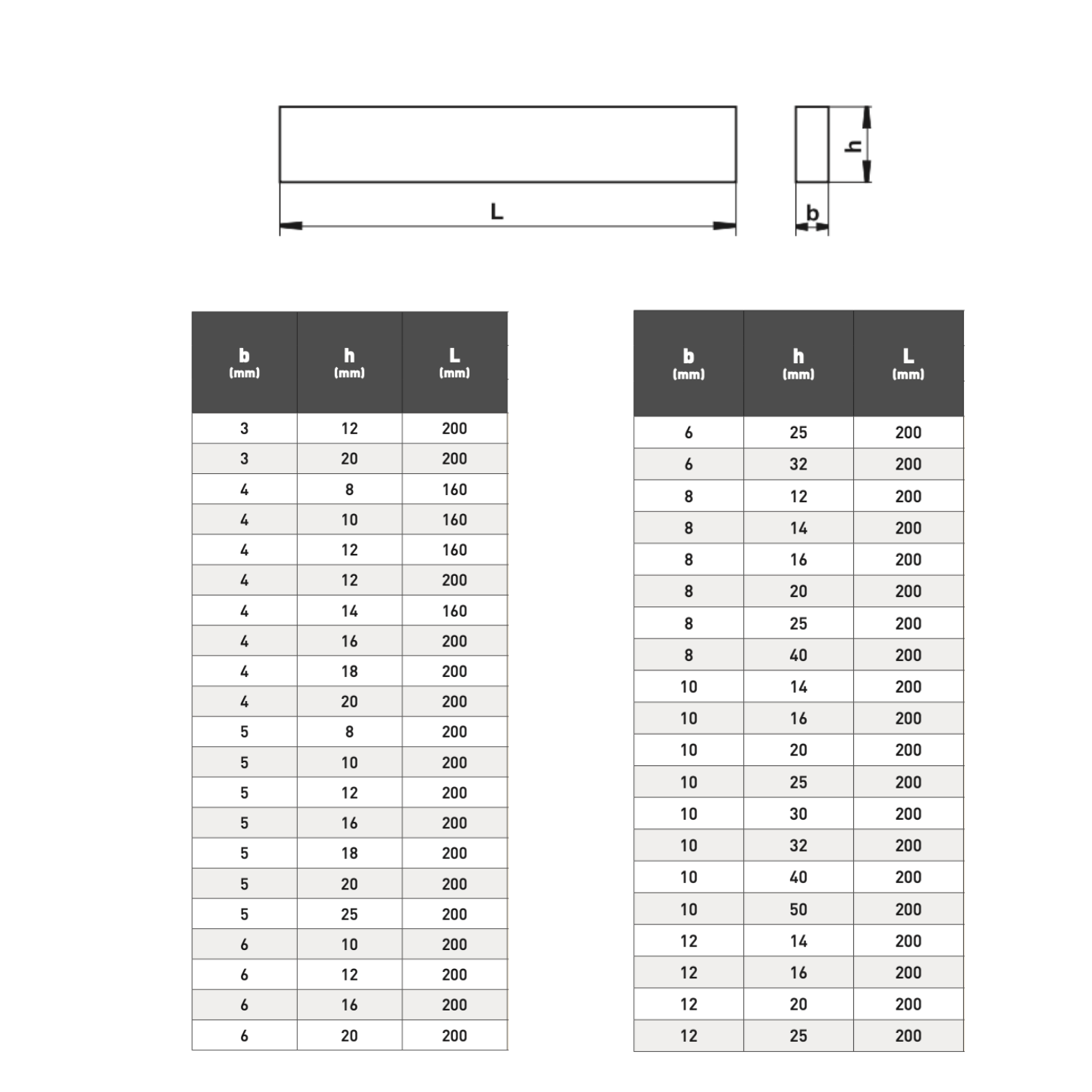 • Farklı kesit seçenekleri: b = 3–12 mm, h = 8–32 mm