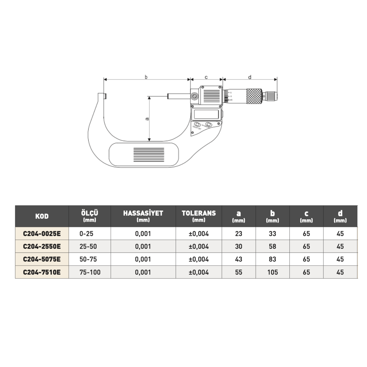 Dijital ekran sayesinde okumalar hatasız şekilde yapılır, ölçüm süreci hızlanır. Makine imalatı, kalibrasyon laboratuvarları ve hassas mekanik işlerde yüksek doğruluk gerektiren tüm uygulamalar için uygundur.
