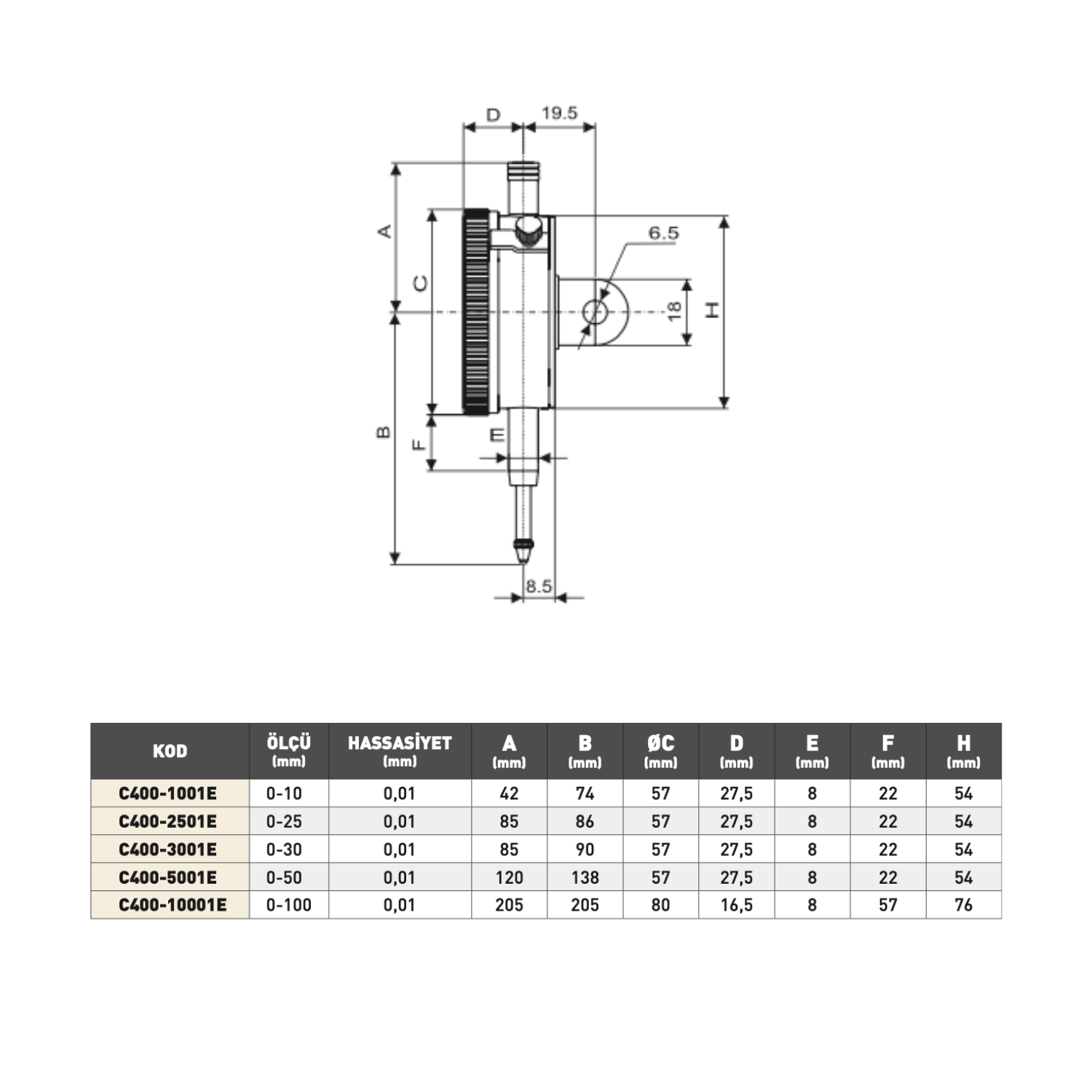 C400 serisi modeller hem kulaklı hem kulaksız olarak kullanılabilir yapısıyla tüm komparatör ayaklarına ve manyetik tablalara kolaylıkla uyum sağlar.