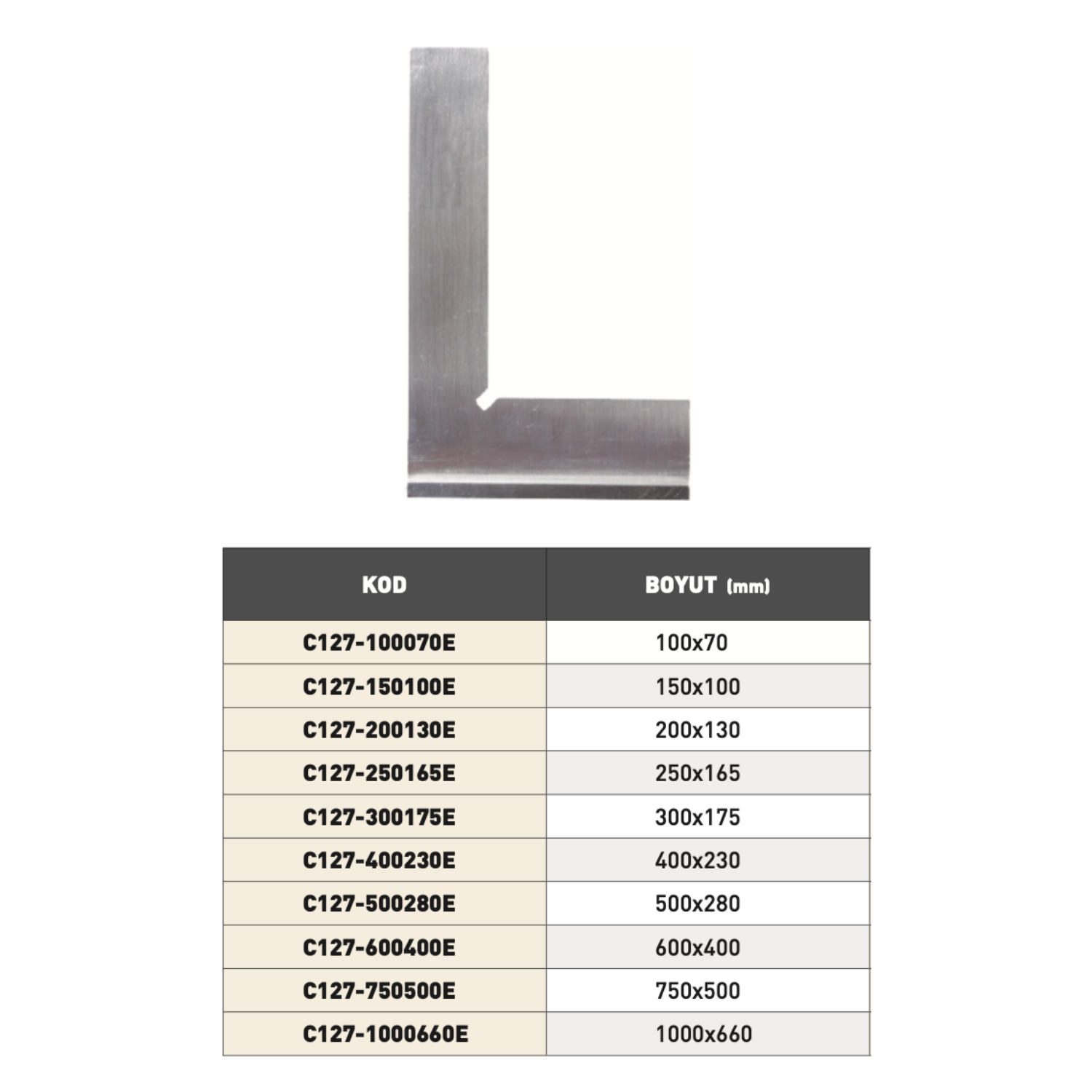 Ekonomik Tip Şapkalı Gönye, uygun maliyetli ancak hassas ölçüm gerektiren işler için geliştirilmiştir. C127-E serisi, şapkalı gövde yapısı sayesinde diklik ve yüzey kontrolünde yüksek stabilite sağlar.