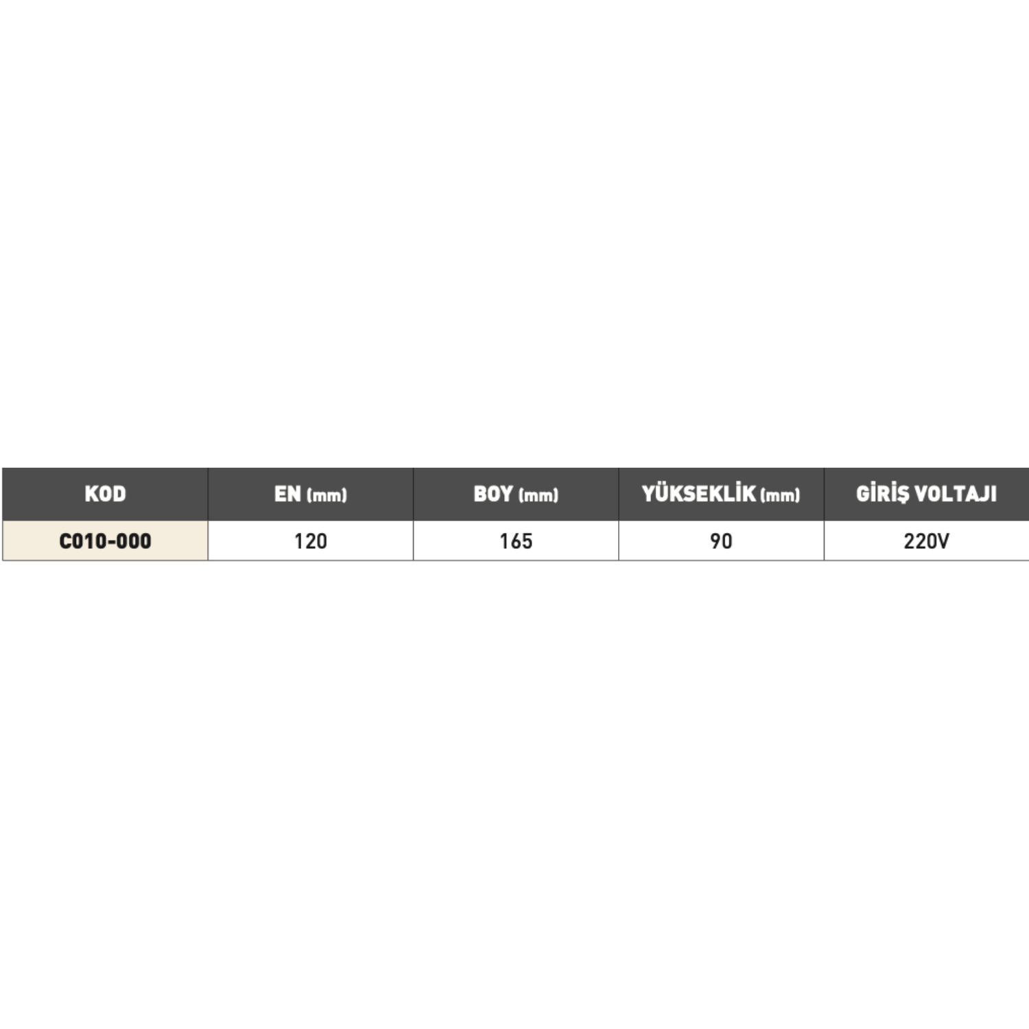 120 × 165 mm çalışma yüzeyi ve 90 mm yükseklik ölçüsü ile kompakt bir tasarıma sahiptir. 220V giriş voltajıyla çalışır ve atölyelerde temizlik işlemlerini hızlandırarak üretkenliği artırır.