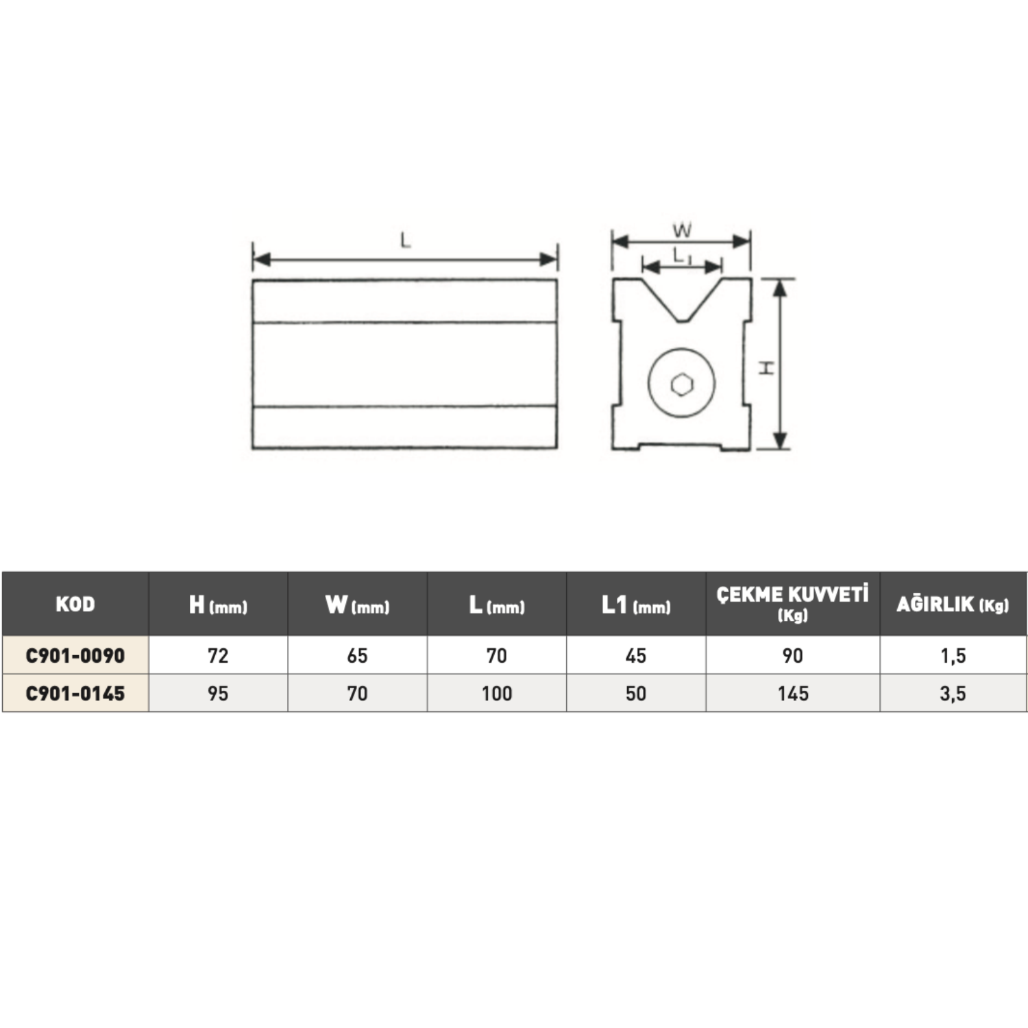 Manyetik V-yatak, silindirik parçaların tek noktadan hassas ölçüm, markalama ve konumlandırma işlemleri için özel olarak tasarlanmıştır. Güçlü manyetik tabanı sayesinde iş parçasını güvenle tutar, kayma veya titreşim oluşmasını engeller.