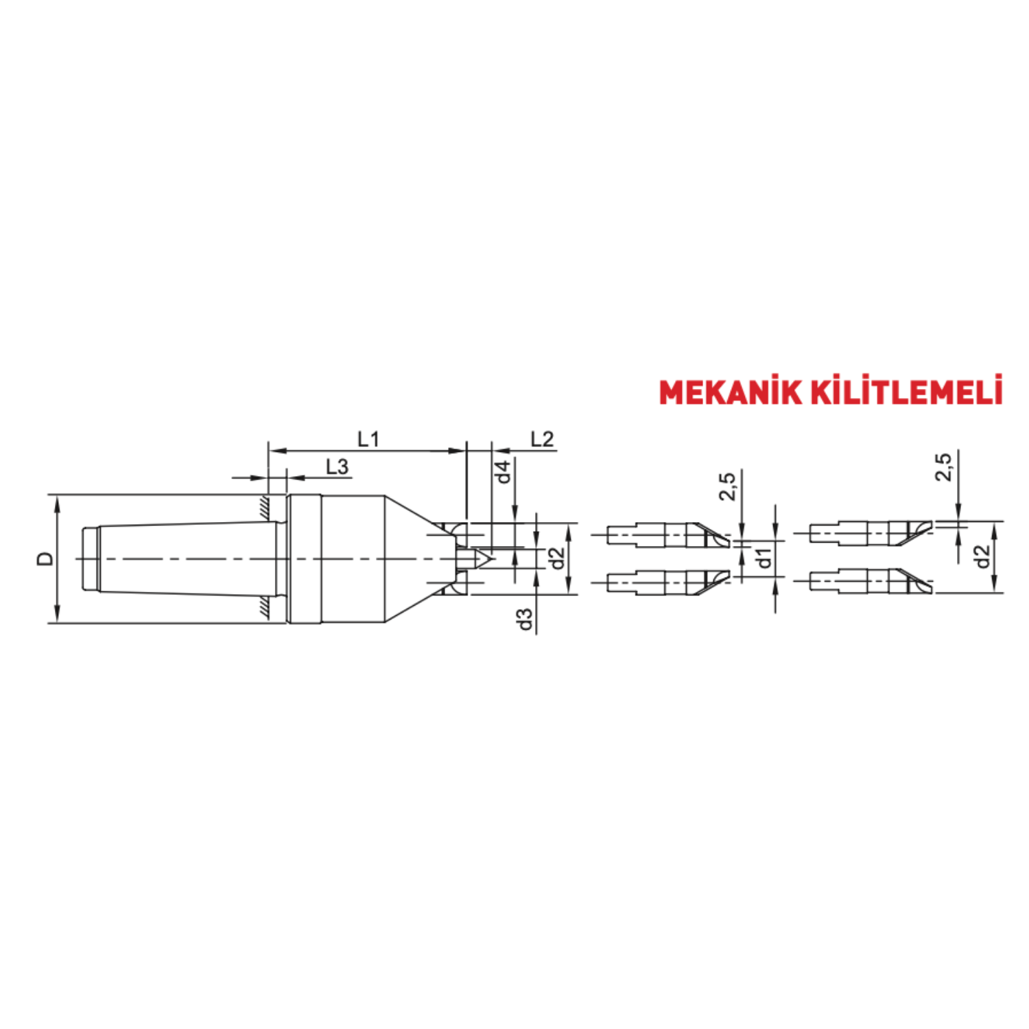 • Mekanik kilitleme sistemiyle güçlü kavrama ve güvenli sabitleme