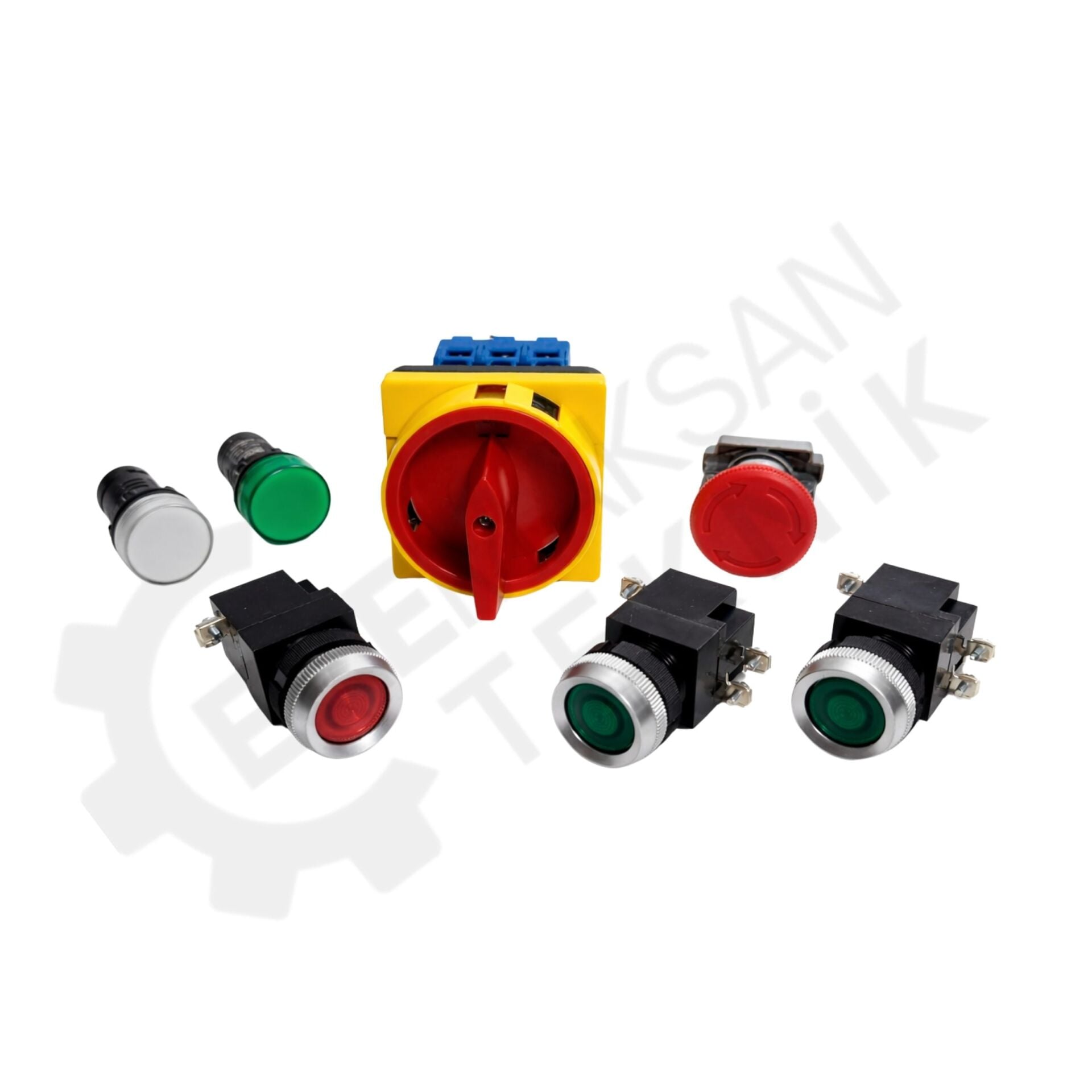 Torna ön buton / anahtar takım komple seti, torna tezgâhlarında güvenli ve pratik kontrol sağlamak amacıyla tasarlanmış eksiksiz bir kumanda çözümüdür. Start–stop butonları, acil stop (emergency stop) butonu ve ana şalter ünitesi ile makine kontrolünü tek noktadan yönetme imkânı sunar. Endüstriyel kullanım için üretilen bu set, dayanıklı yapısı ve kolay montaj özelliği ile öne çıkar.