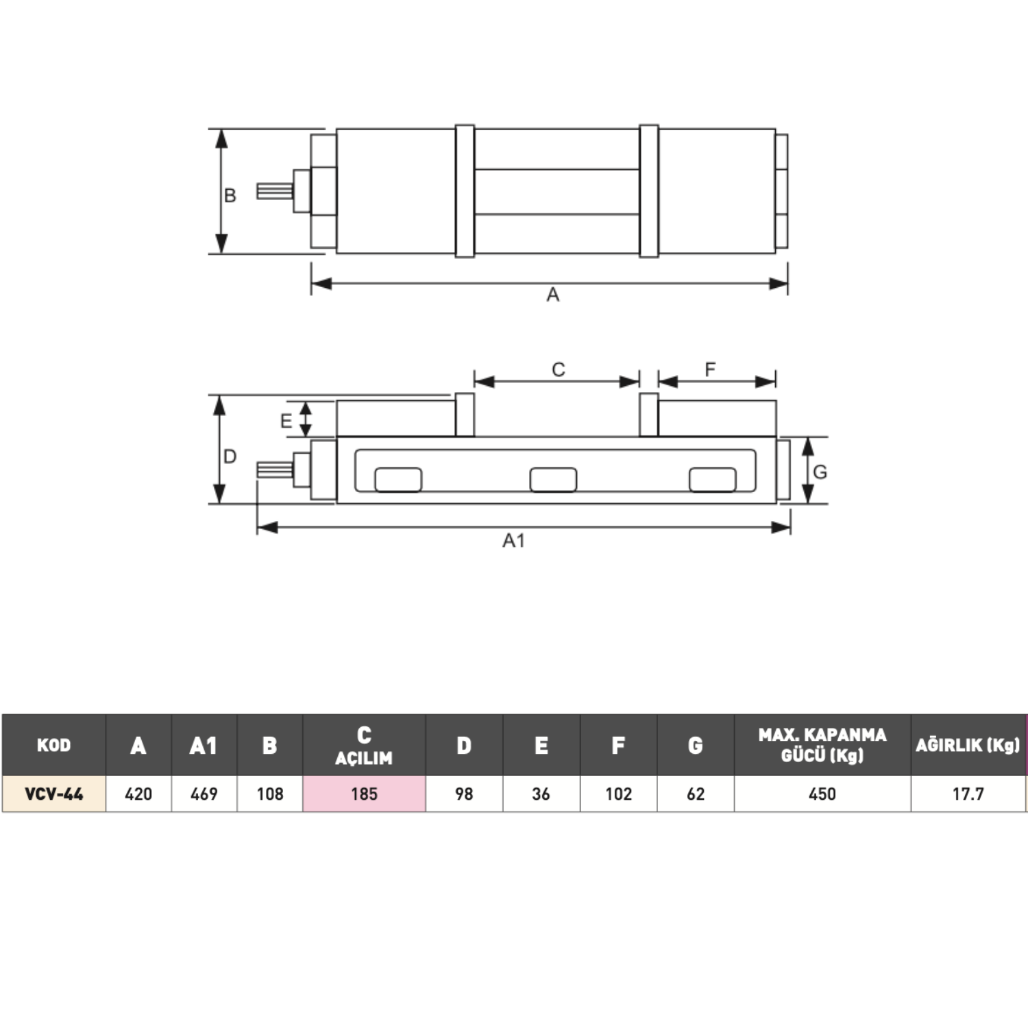 • Geniş Açılım Kapasitesi: 185 mm’ye kadar açılım ile farklı boyutlardaki iş parçalarının güvenli bir şekilde sabitlenmesini sağlar.