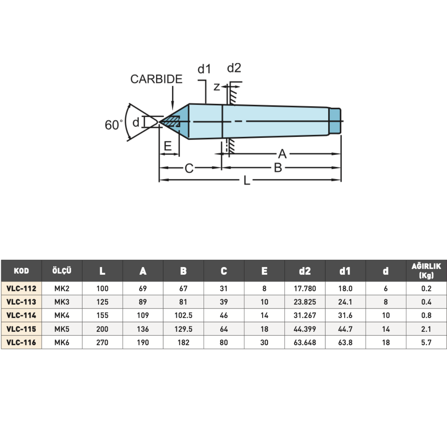 Tüm modellerin elmas uç kısmı HRC 70 sertliğinde, merkezleme eksen kaçıklığı ise maksimum 0,005 mm toleranstadır.