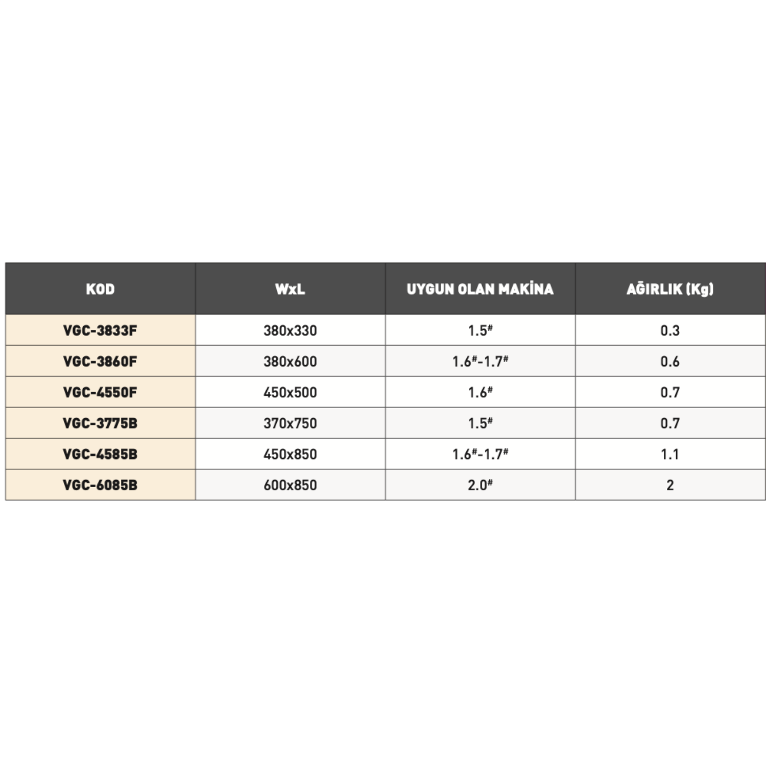 • Kodlar: VGC-3833F, VGC-3860F, VGC-4550F, VGC-3775B, VGC-4585B, VGC-6085B