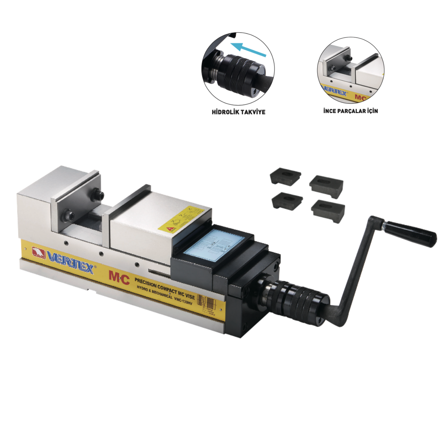 Vertex VMC Serisi Hidrolik MC Mengeneler, endüstriyel işleme operasyonlarında yüksek sıkma gücü, hassasiyet ve dayanıklılığı bir arada sunan profesyonel mengene serisidir. Mekanik ve hidrolik sıkma sistemini birleştiren yapısı sayesinde hem hassas hem de ağır işlerde maksimum performans sağlar.