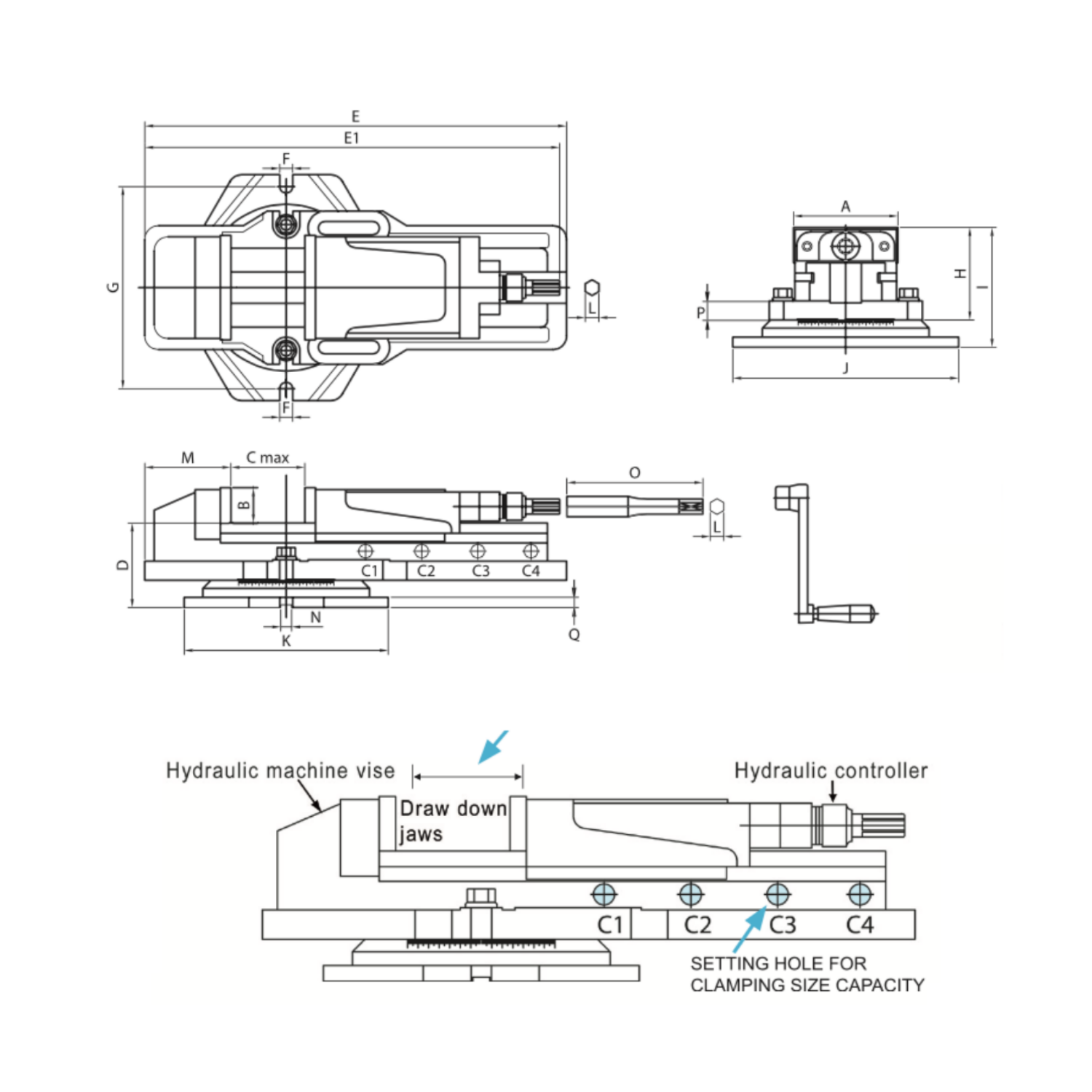• Güçlü Hidrolik Mekanizma: Entegre hidrolik sistem, yüksek sıkma kuvvetiyle büyük parçaların güvenle sabitlenmesini sağlar.