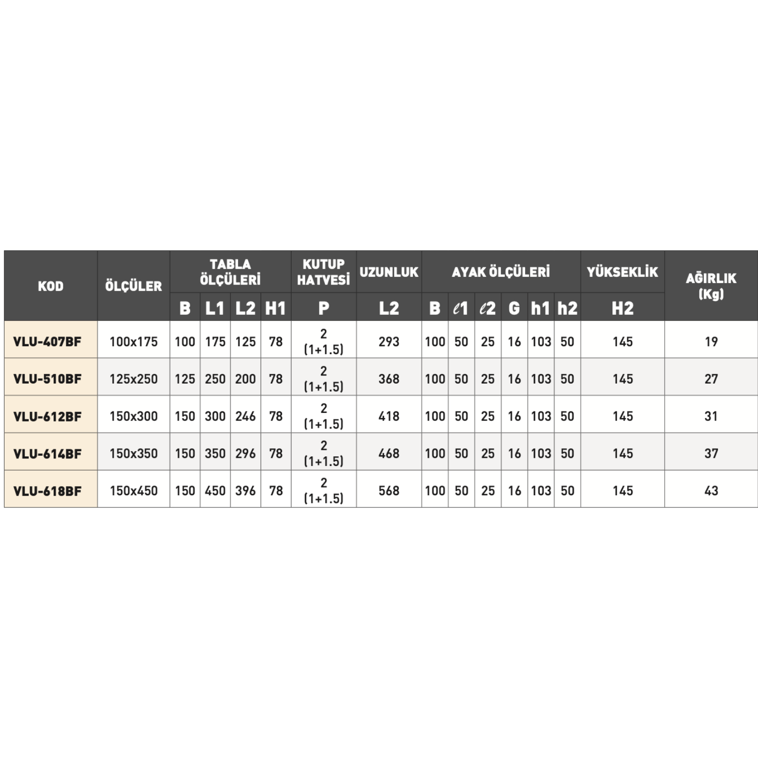 • Tabla Ölçüleri: 100x175 mm – 150x450 mm arası