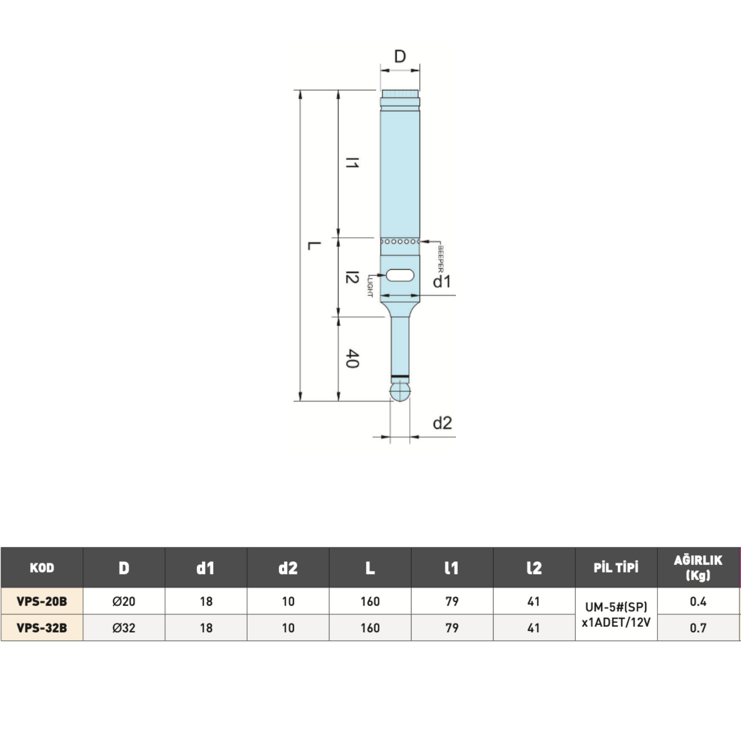 • Gövde çapı: 32 mm