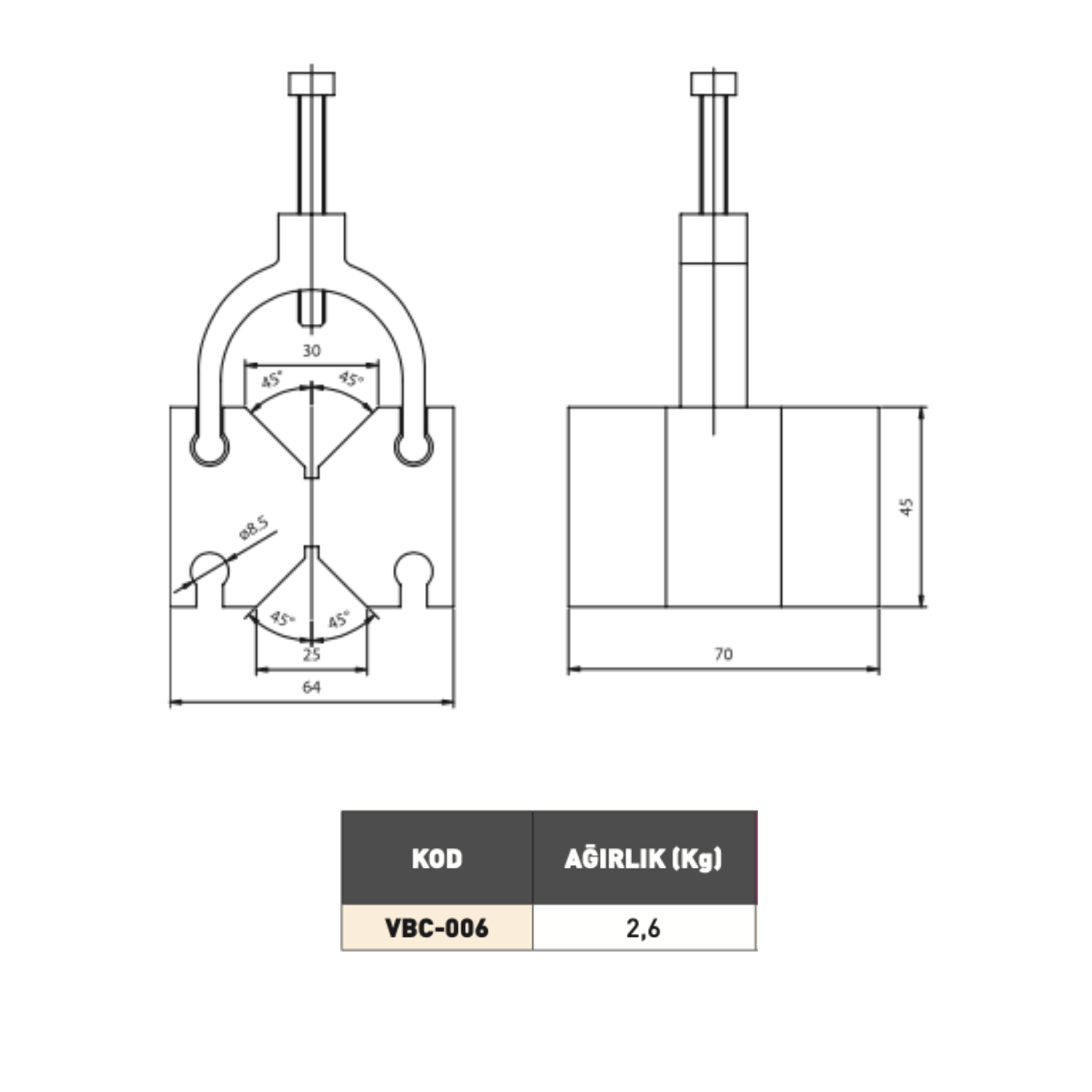 Vertex VBC-006 V Yatak, sağlam yapısı, kıskaclı kilitleme mekanizması ve yüksek hassasiyetli V kanalıyla profesyonel işleme ortamlarında güvenli bir sabitleme çözümü sunar. Hassas ölçüm, taşlama ve montaj uygulamalarında mükemmel destek sağlar.
