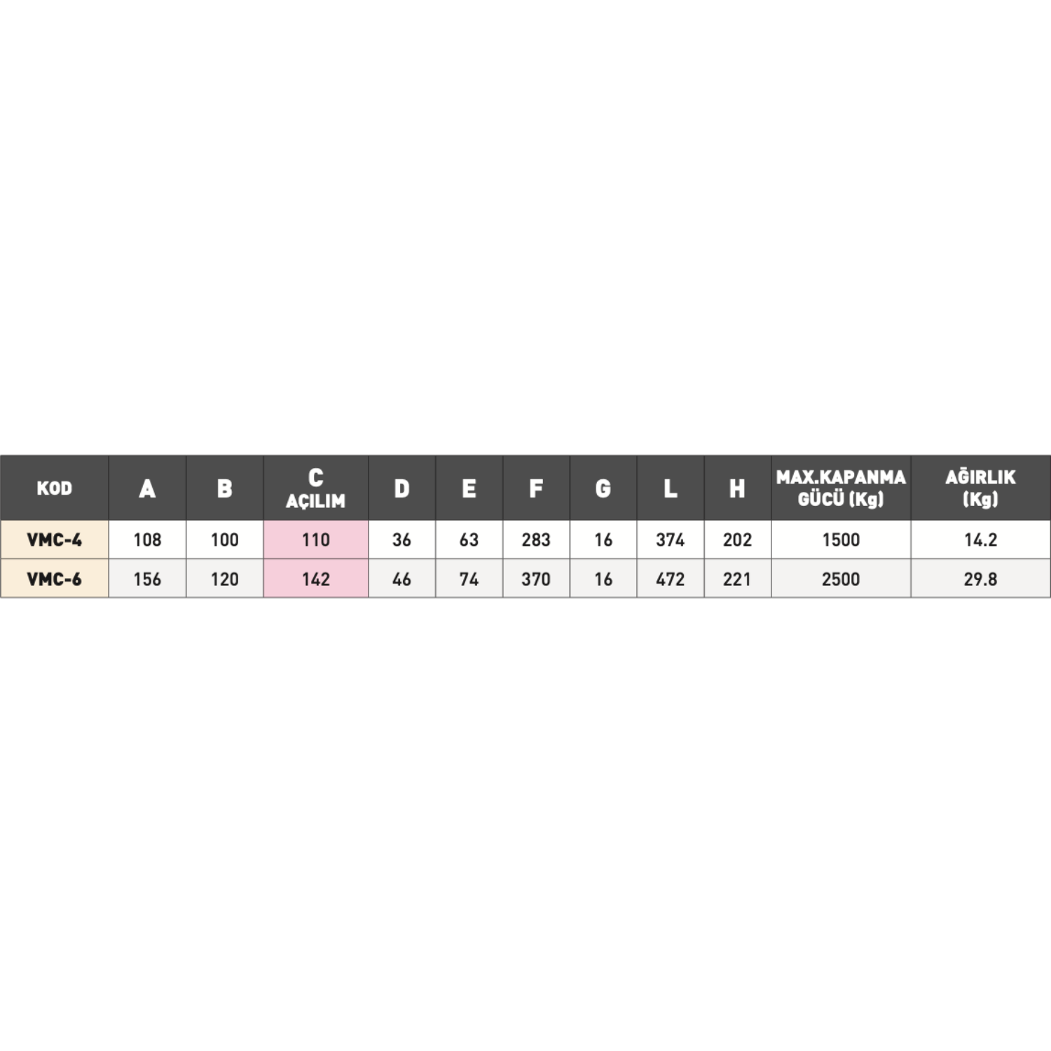 • Çene Açılımı: 110 mm – 142 mm